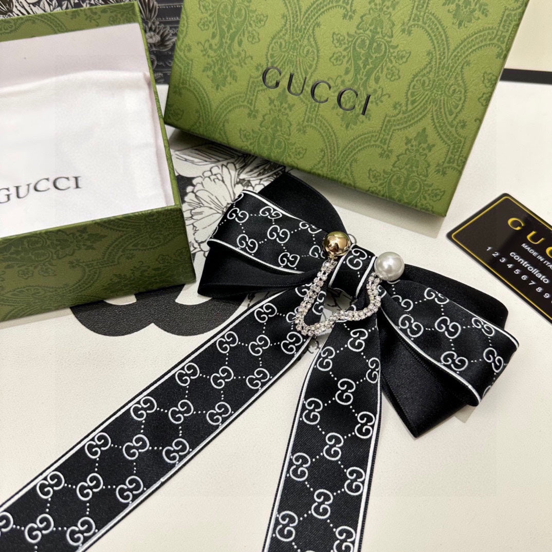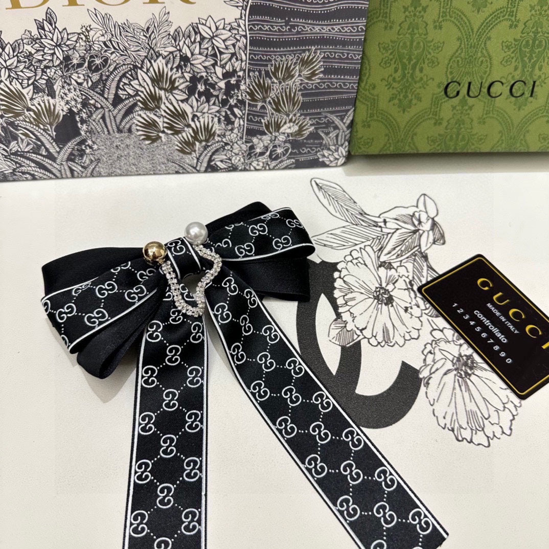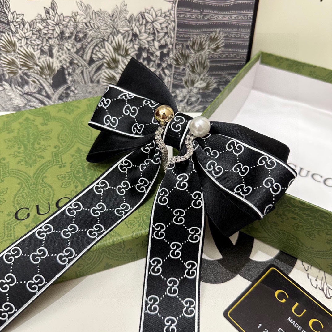 RIBBON BOW HAIR CLIP IN BLACK RE-NYLON ATTACHED PEARL 358260
