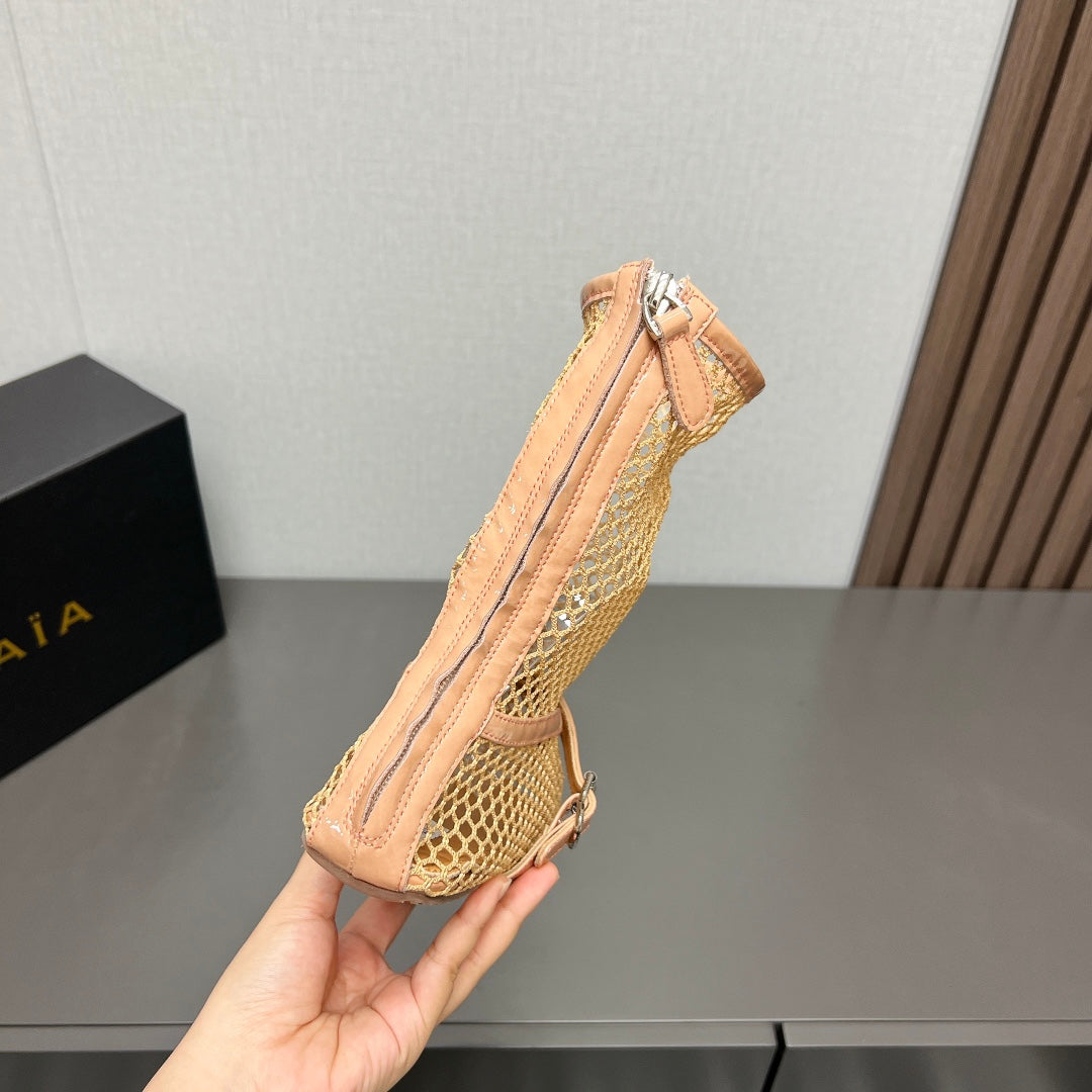 ALAIA SHORT BOOTS IN BEIGE MESH FISHNET