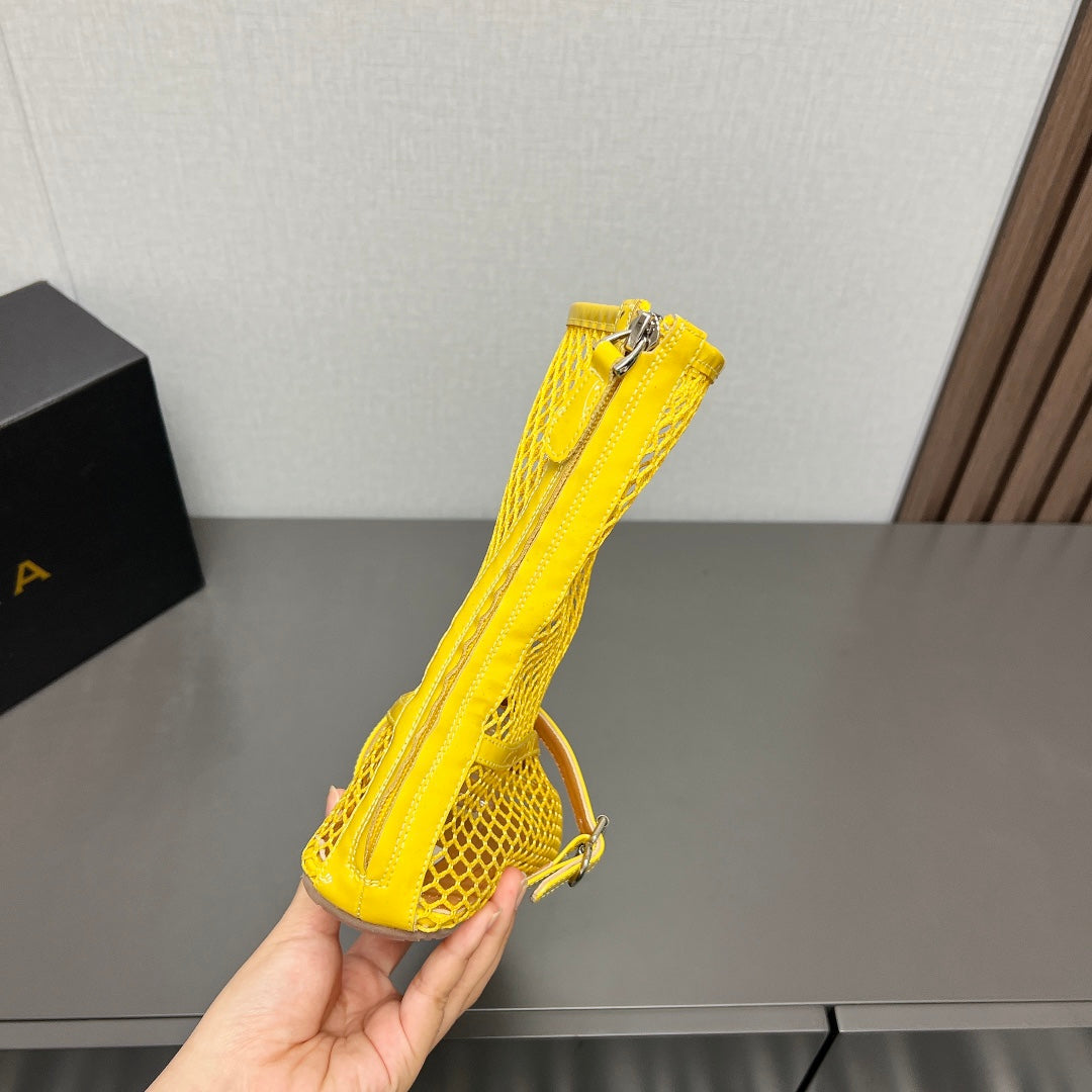 ALAIA SHORT BOOTS IN LEMON YELLOW MESH FISHNET