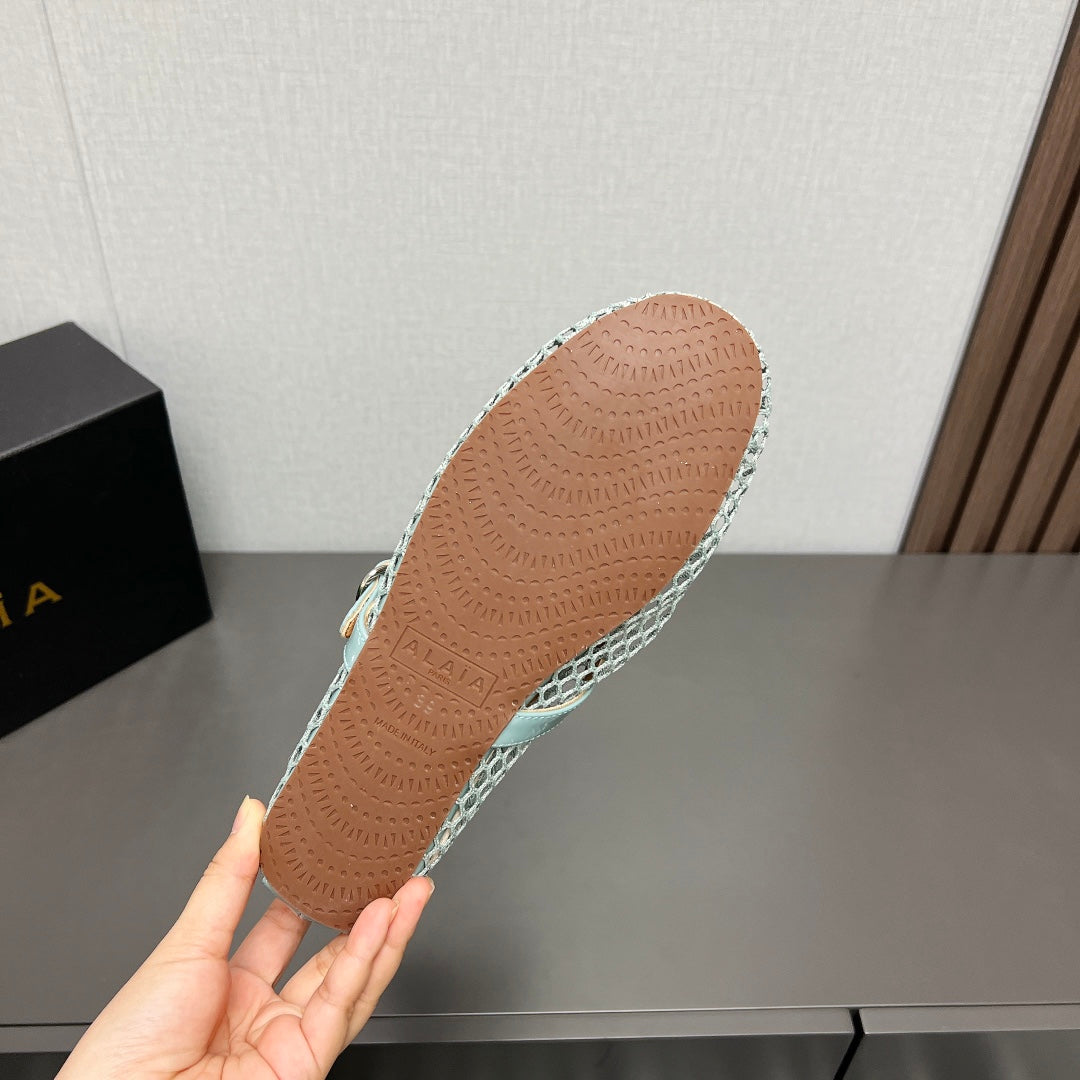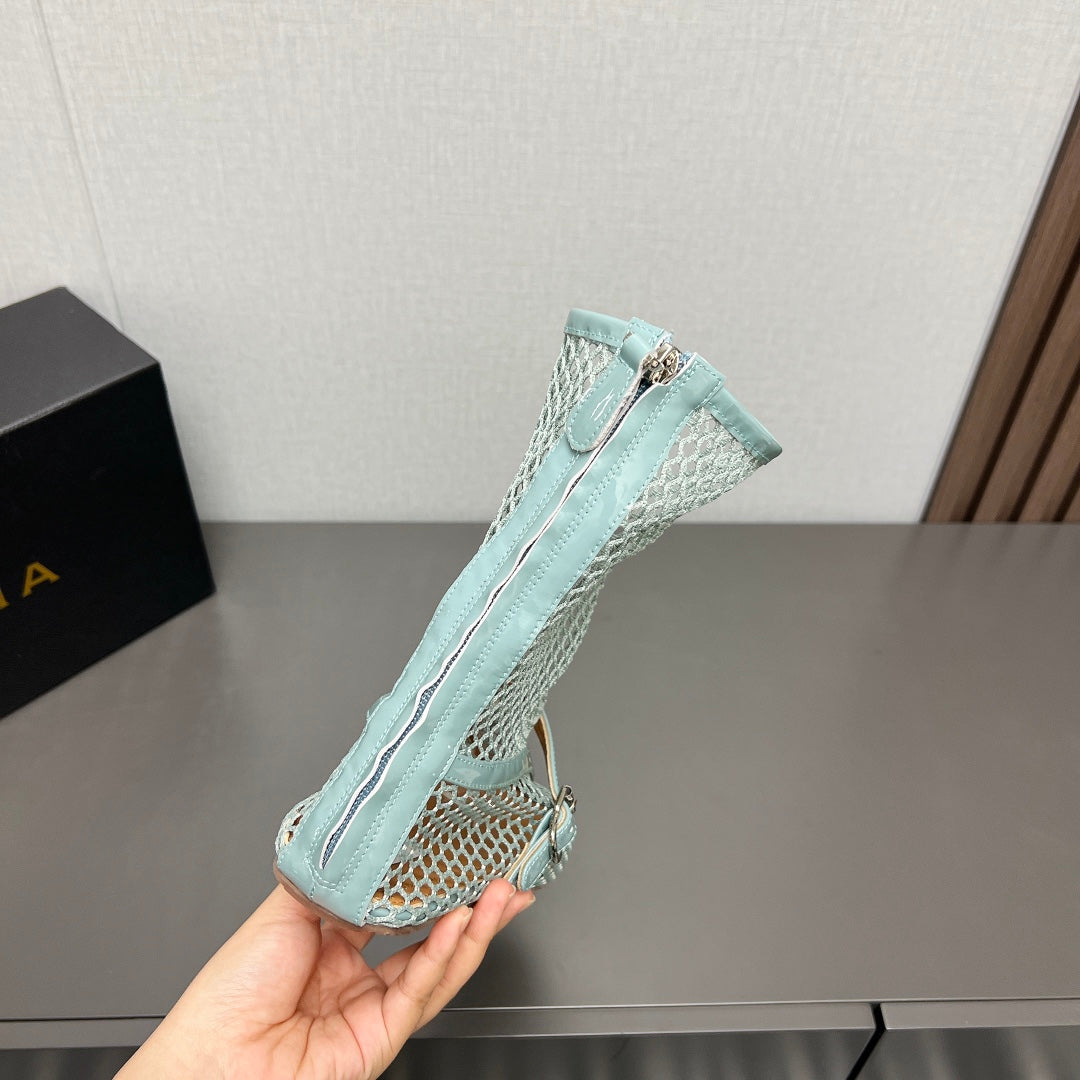 ALAIA SHORT BOOTS IN LIGHT BLUE MESH FISHNET