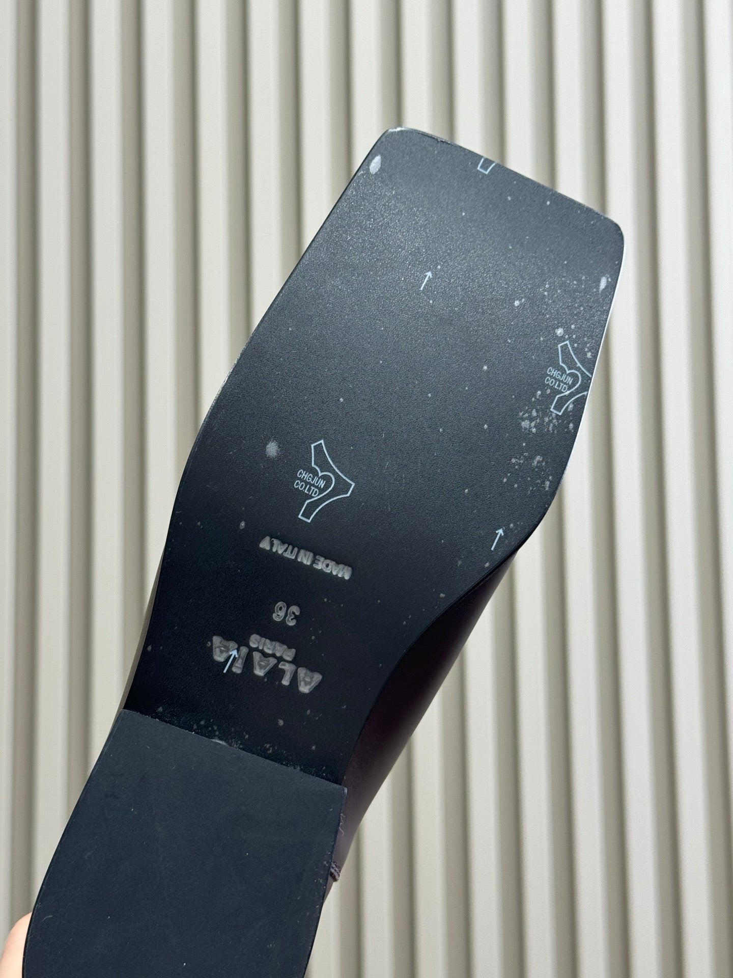 ALAIA 25S SQUARE TOE CHELSEA ANKLE BOOTS SHOES IN BROWN CALFSKIN