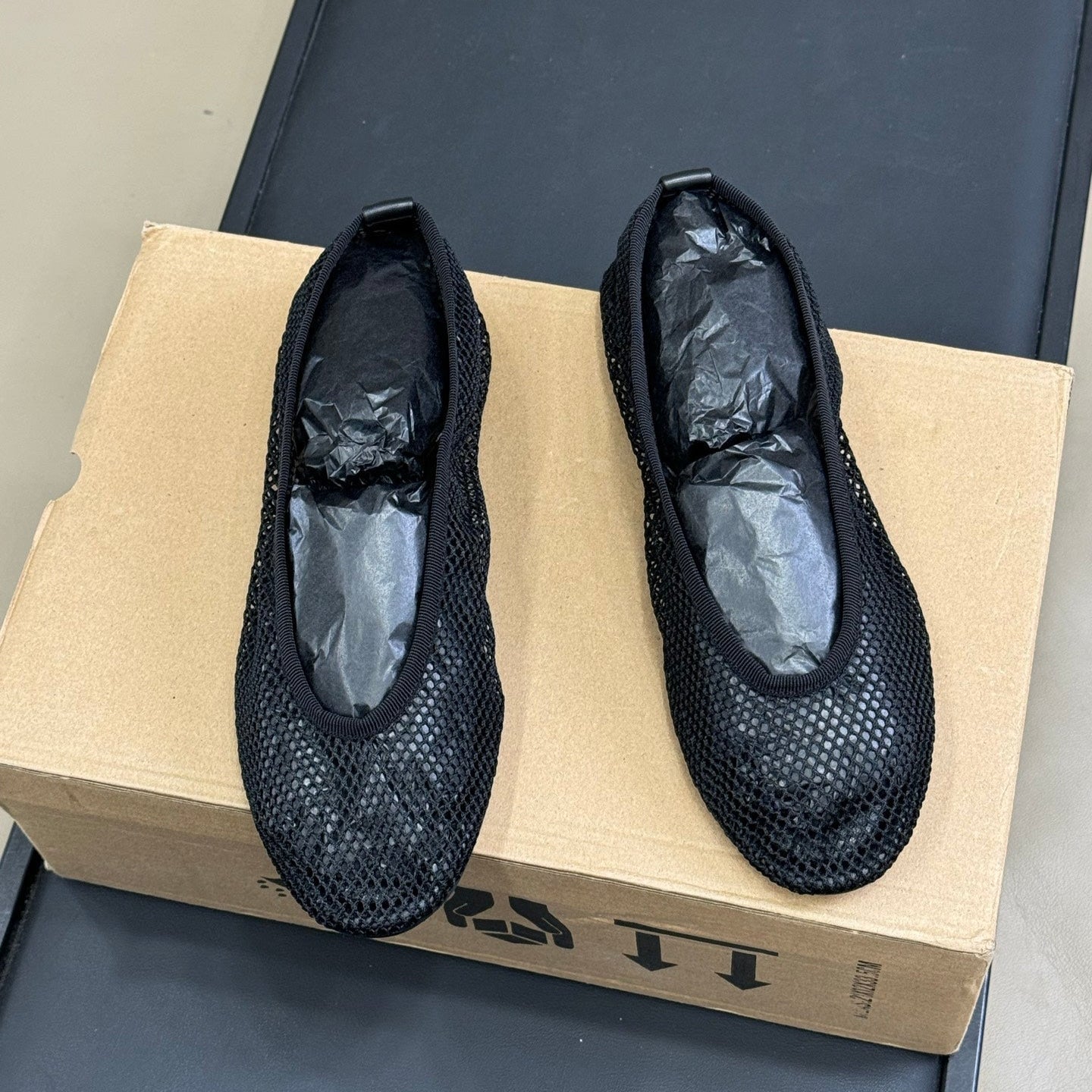 ALAIA FISHNET MESH BALLET FLATS 25S IN BLACK FABRIC