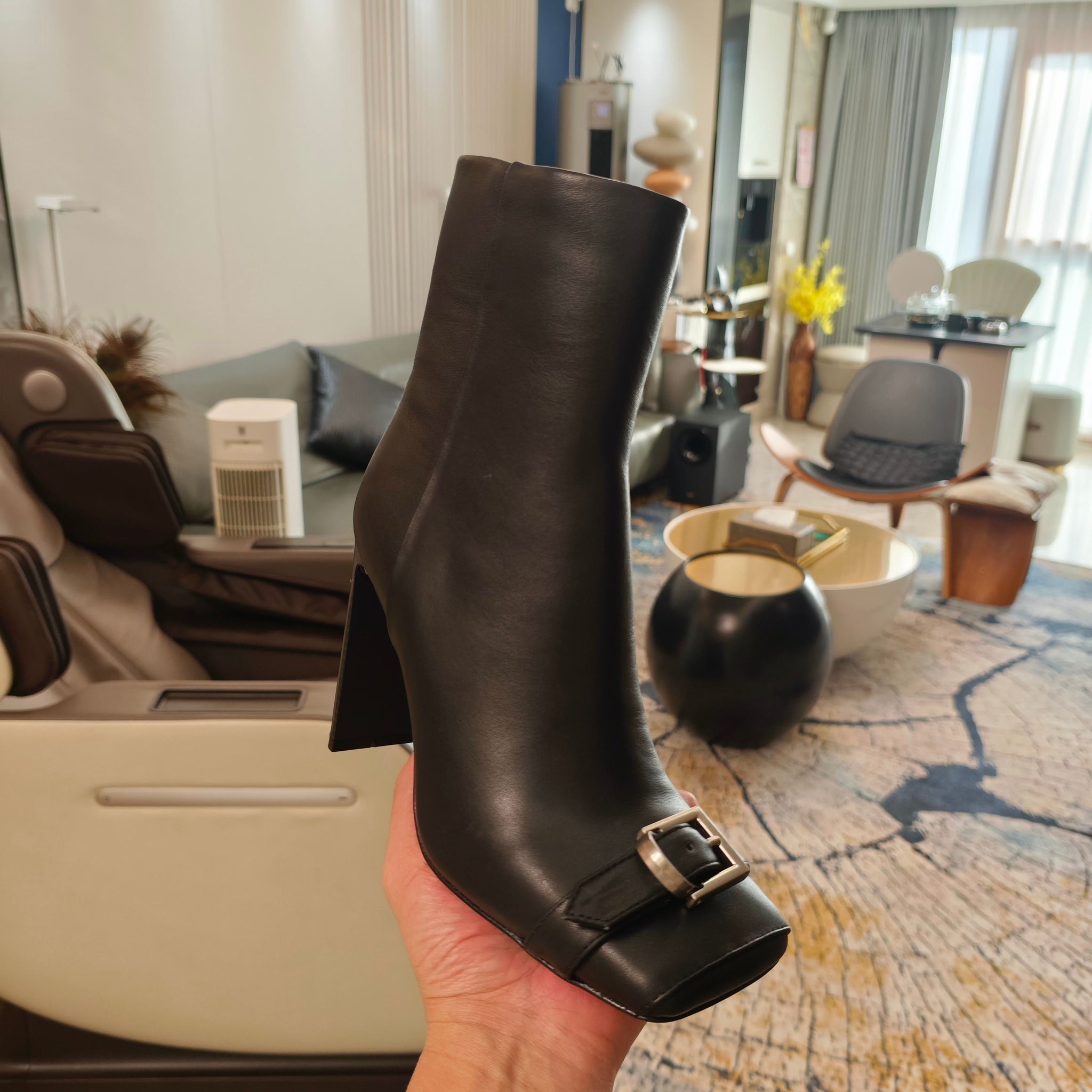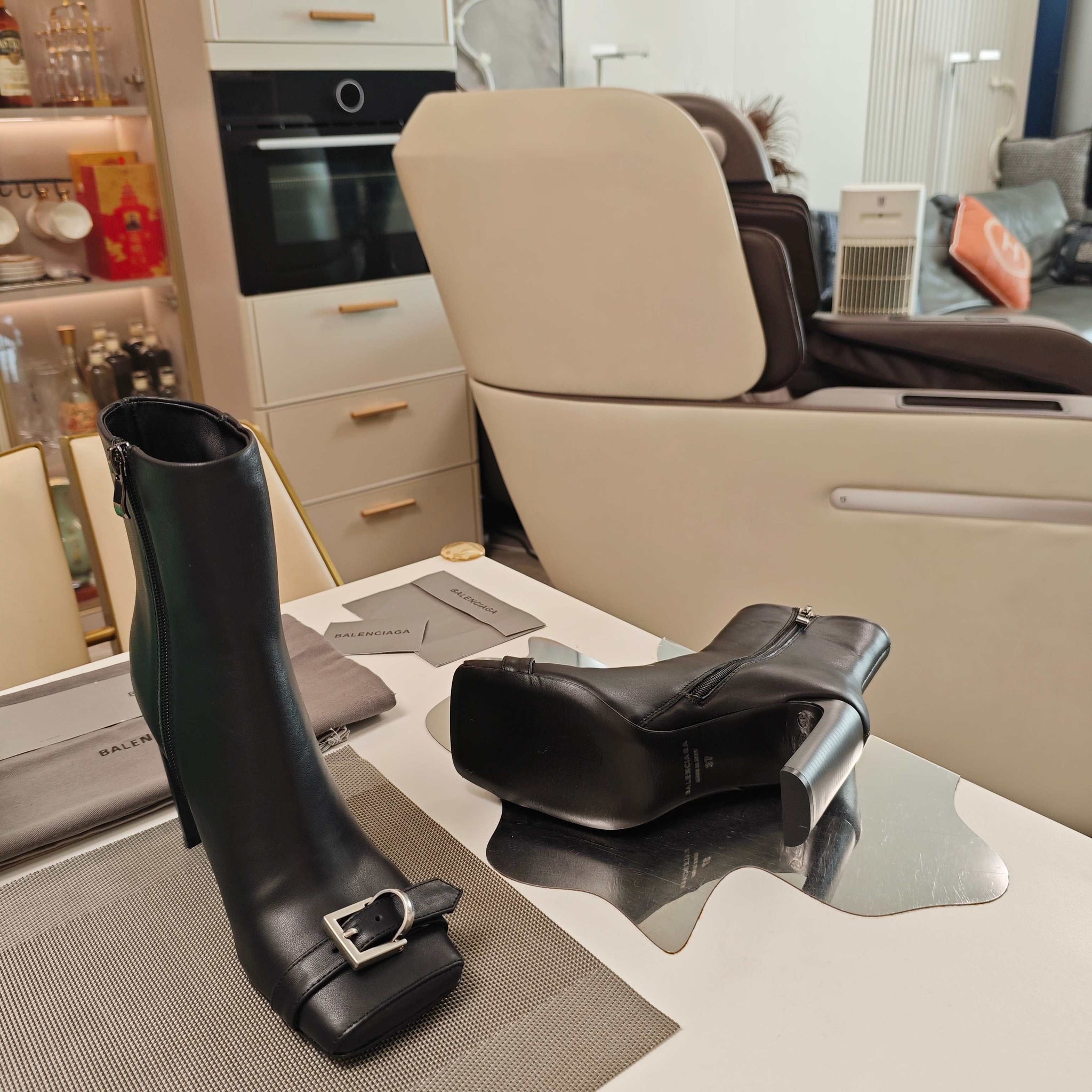 BALENCIAGA 25S BEL AIR BOOTS 115 MM IN BLACK CALFSKIN WITH SILVER HARDWARE