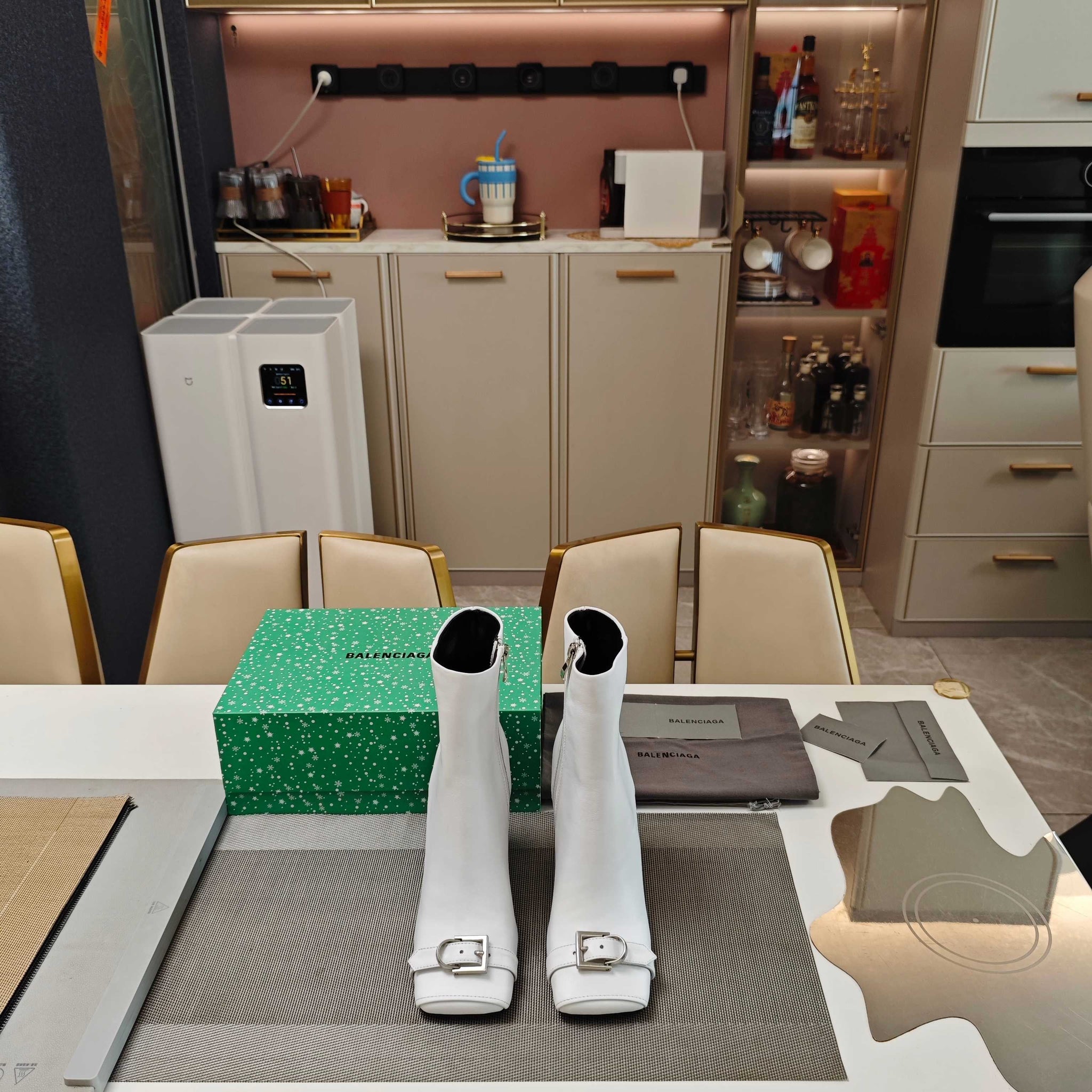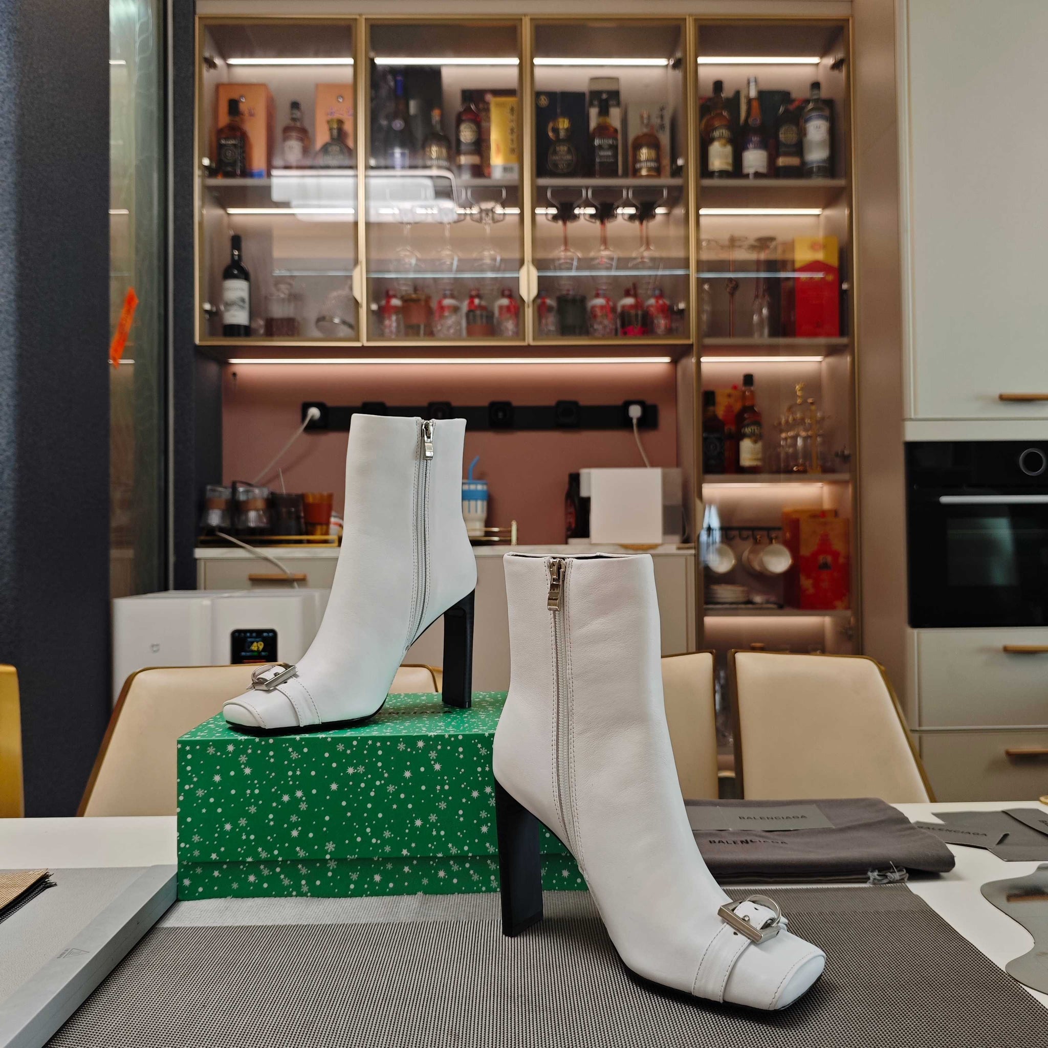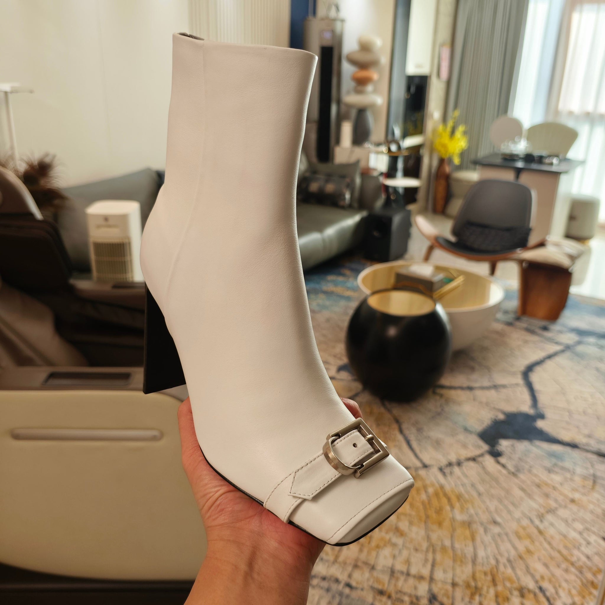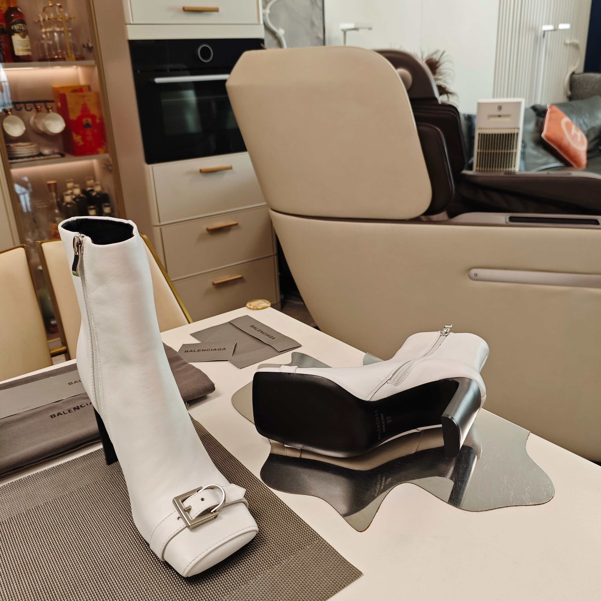 BALENCIAGA 25S BEL AIR BOOTS 115 MM IN WHITE CALFSKIN WITH SILVER HARDWARE