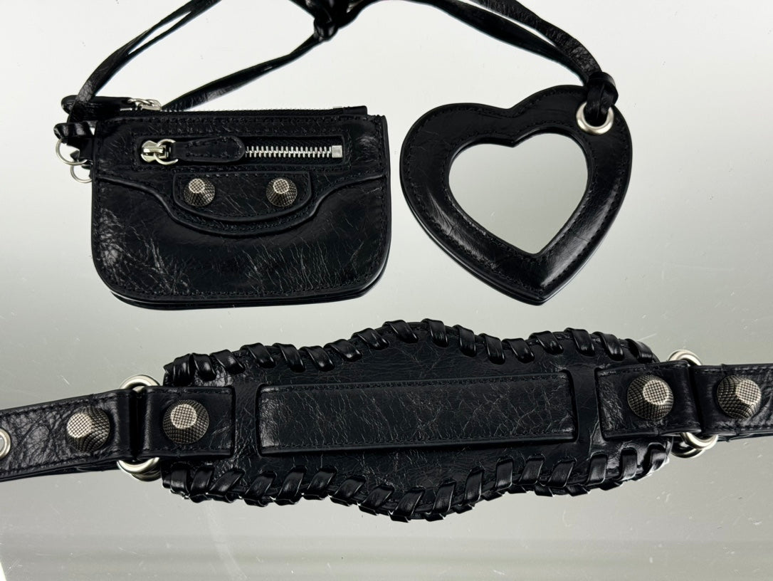 LE CAGOLE LARGE SHOULDER BAG 33 WITH RHINESTONES IN BLACK ARENA LAMBSKIN SILVER HARDWARE