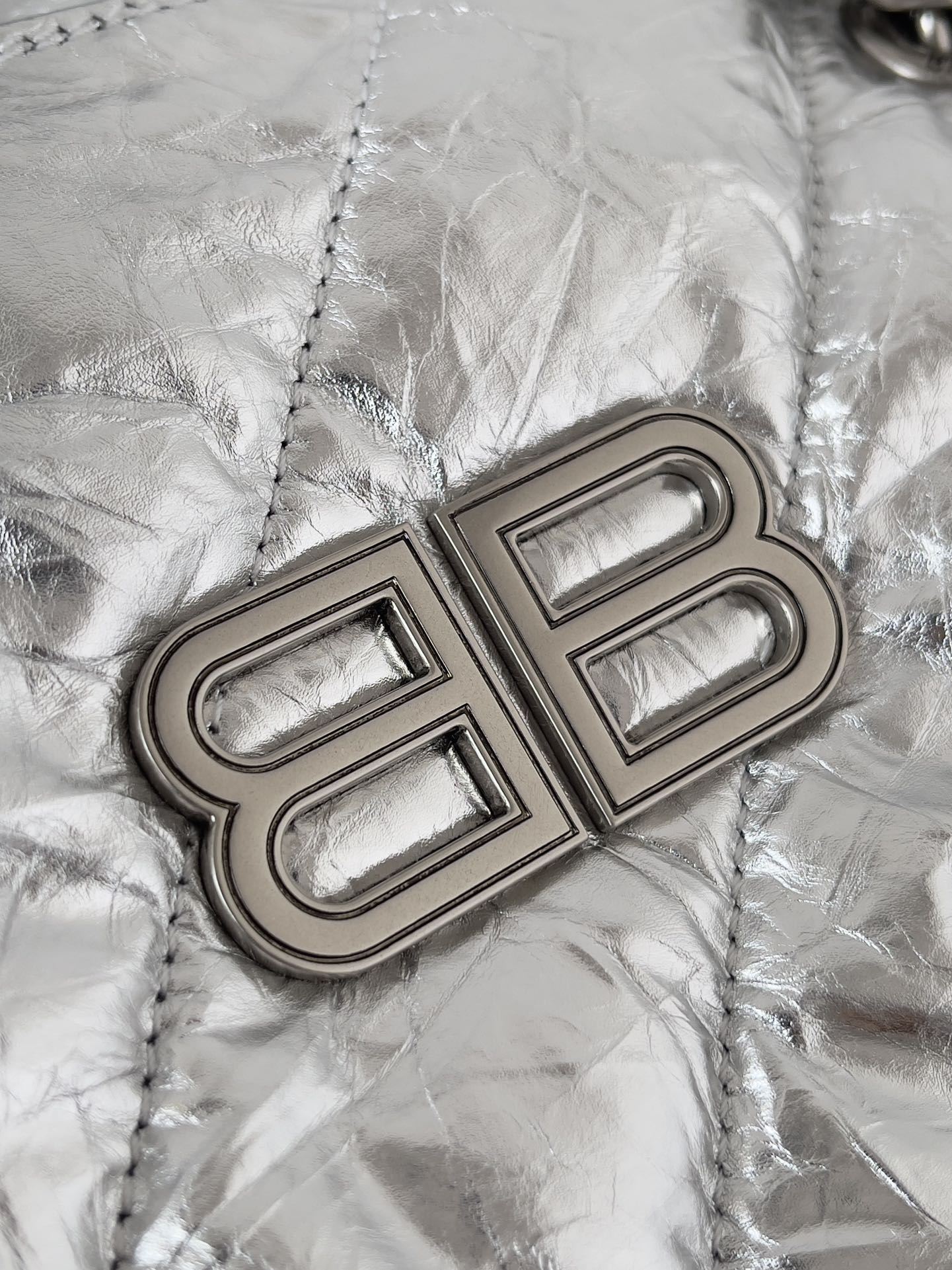 CRUSH SMALL TOTE BAG 26 IN SILVER QUILTED CALFSKIN SILVER HARDWARE