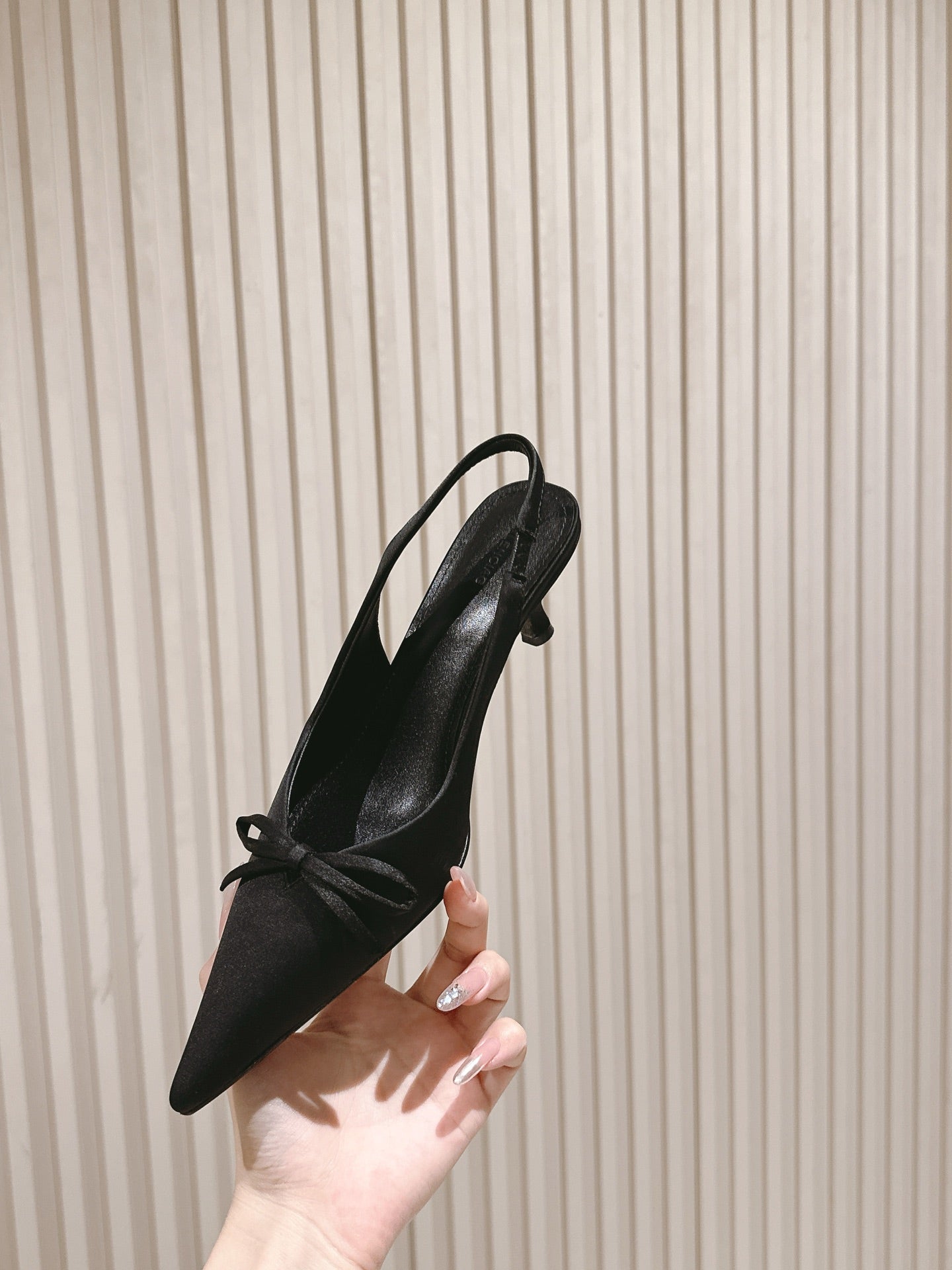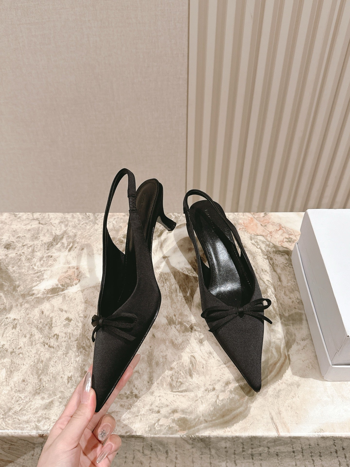 BALENCIAGA 25S HIGH SLINGBACK IN BLACK SATIN WITH SMALL BOW
