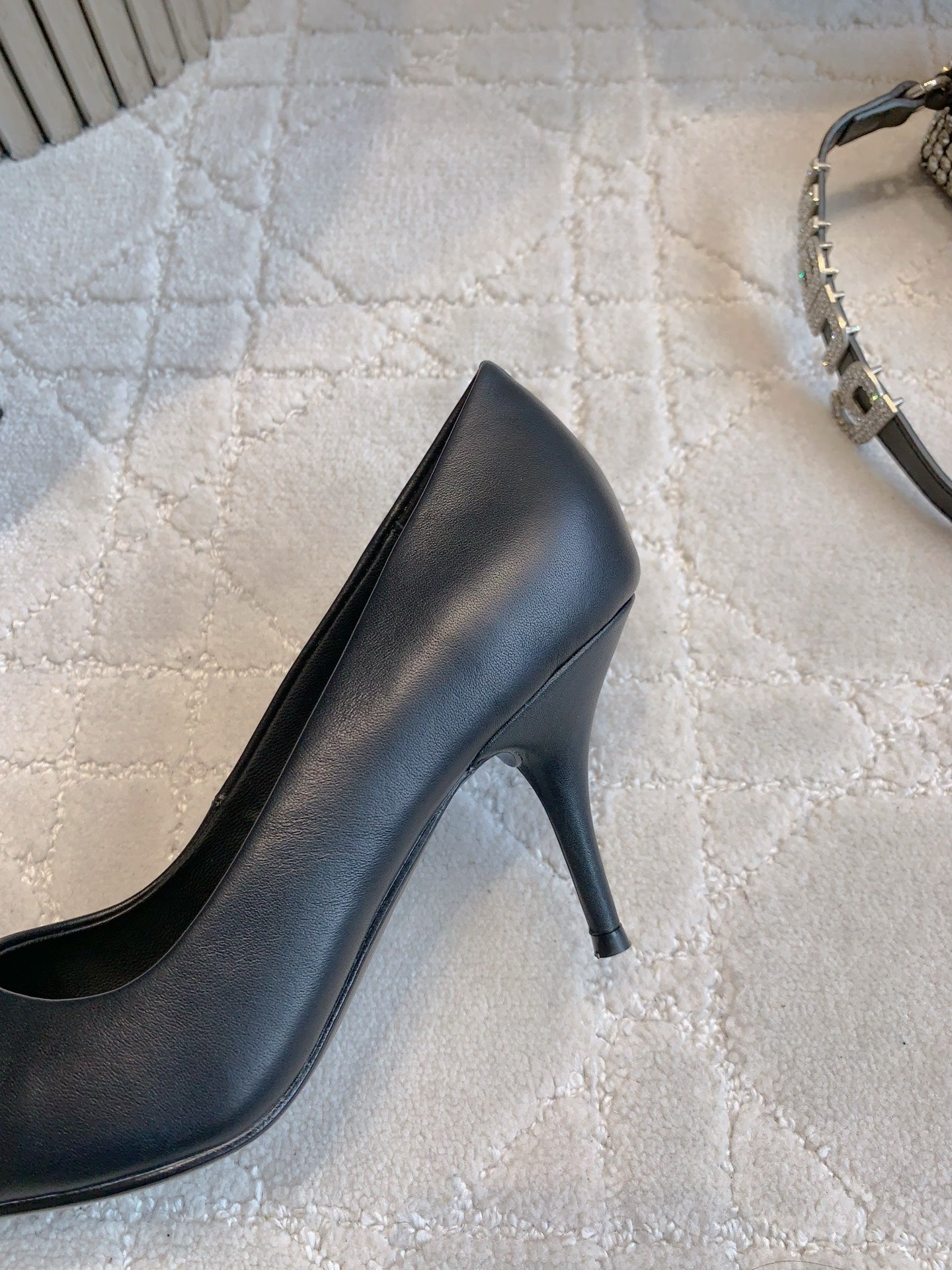 BALENCIAGA 25S POINTED-TOE HIGH HEELS 70 MM IN BLACK CALFSKIN WITH GOLD HARDWARE