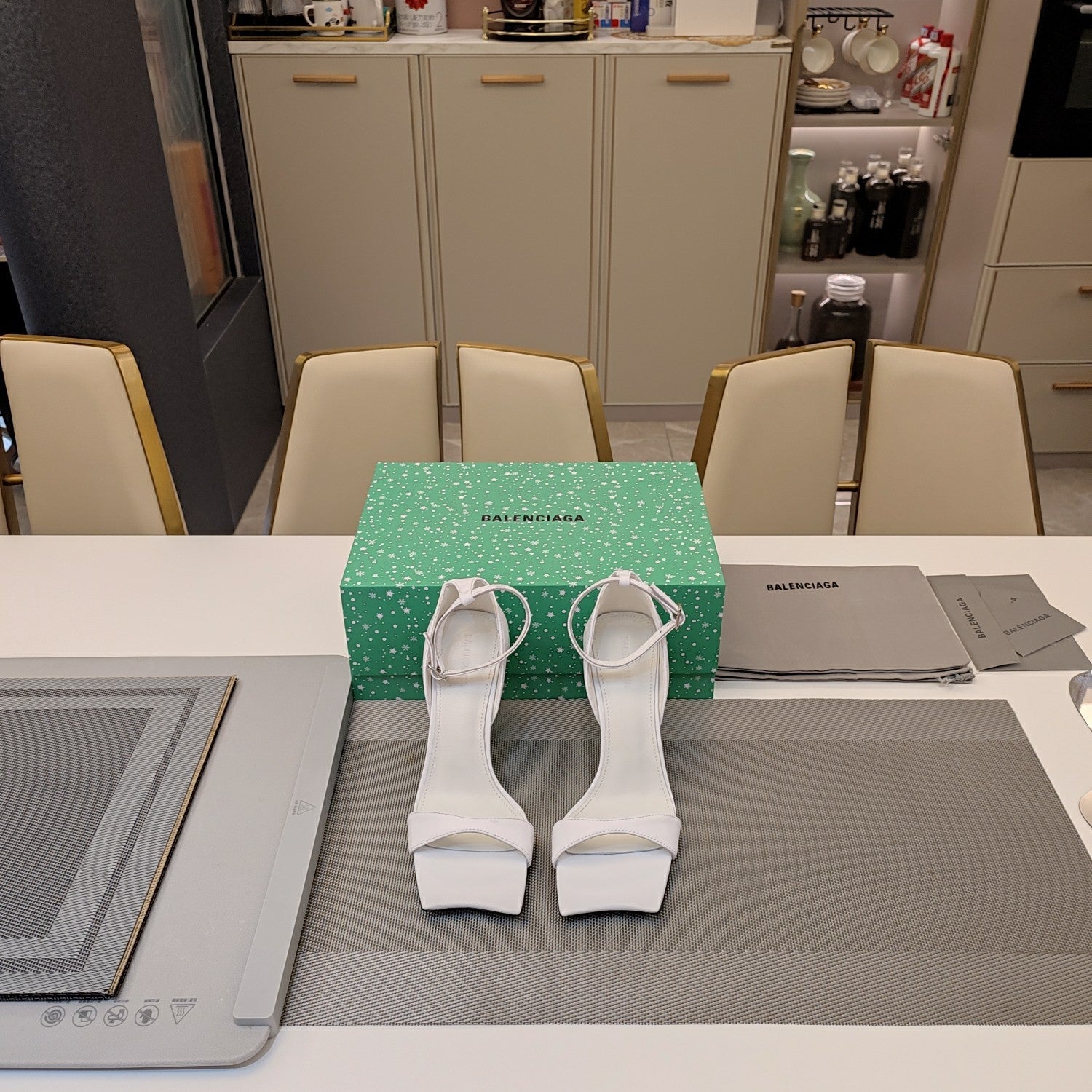 OPEN-TOE CURVED HIGH HEEL SANDALS IN WHITE SMOOTH CALFSKIN