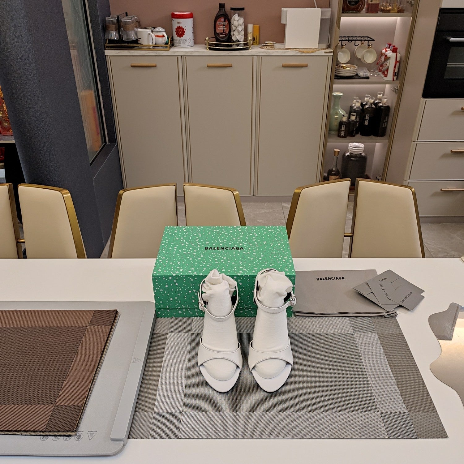 OPEN TOE STRAPPY HIGH HEEL IN WHITE CALFSKIN