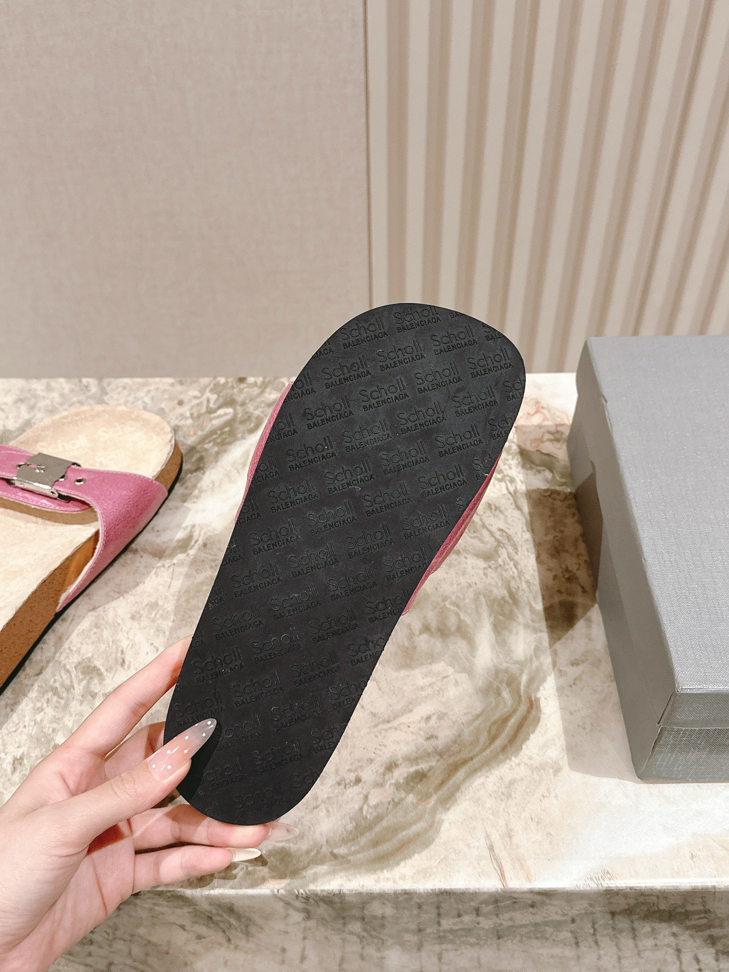 BALENCIAGA 25S SCHOLL SLIDES IN PINK PU LEATHER WITH SILVER HARDWARE