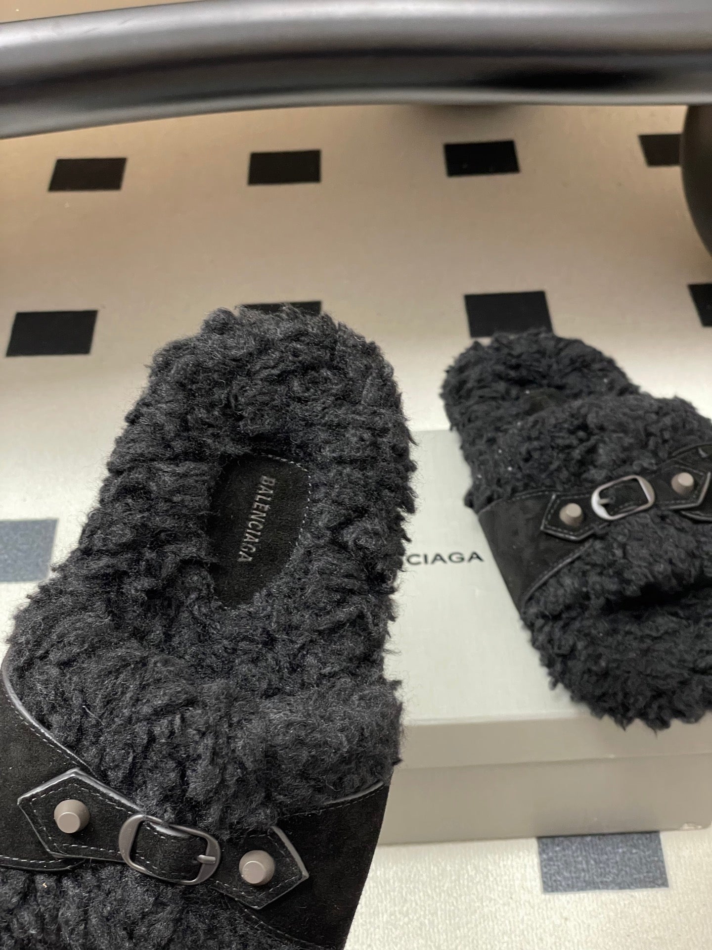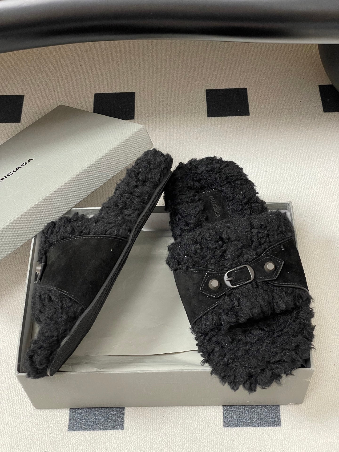 BALENCIAGA 25S SLIPPERS IN BLACK SUEDE AND WOOL