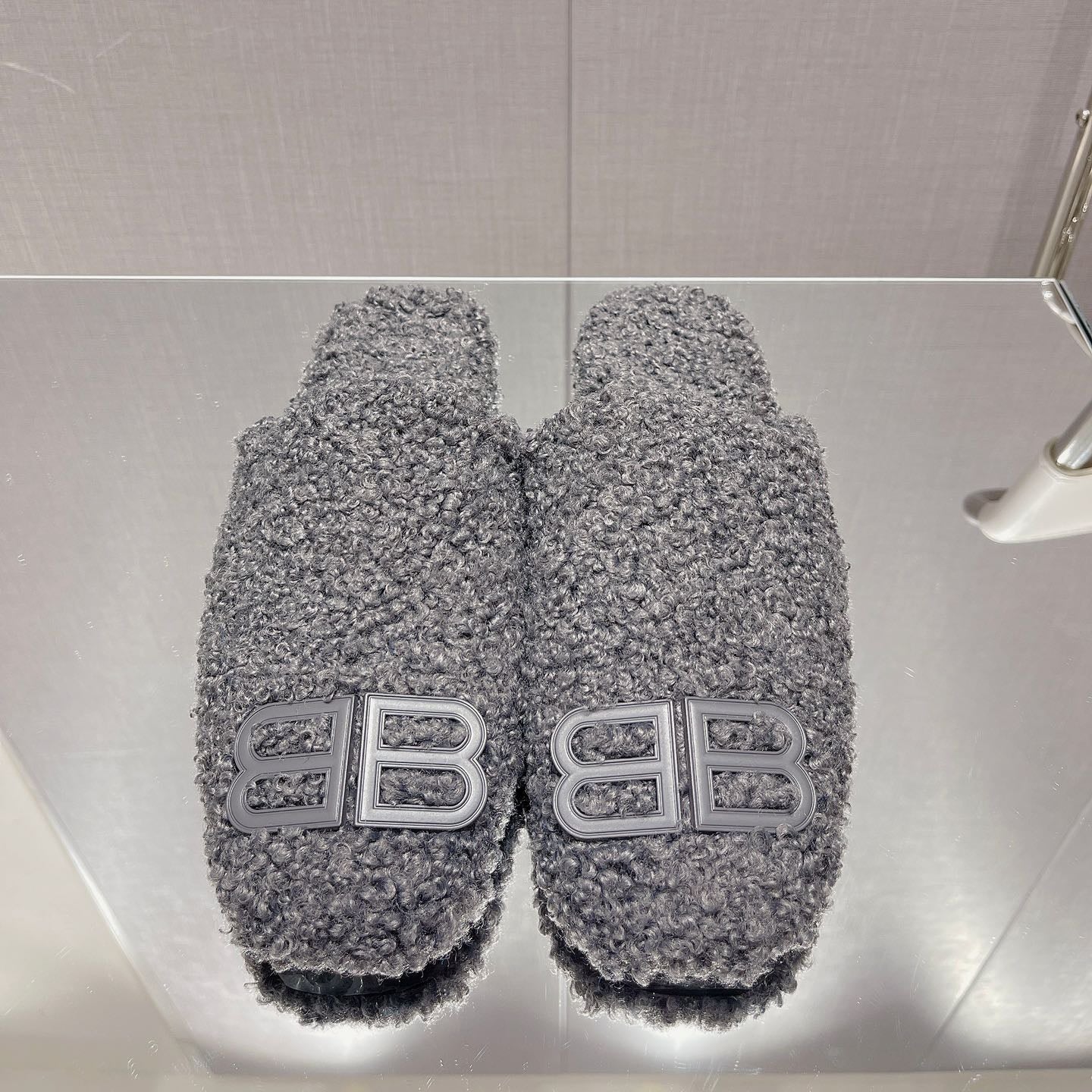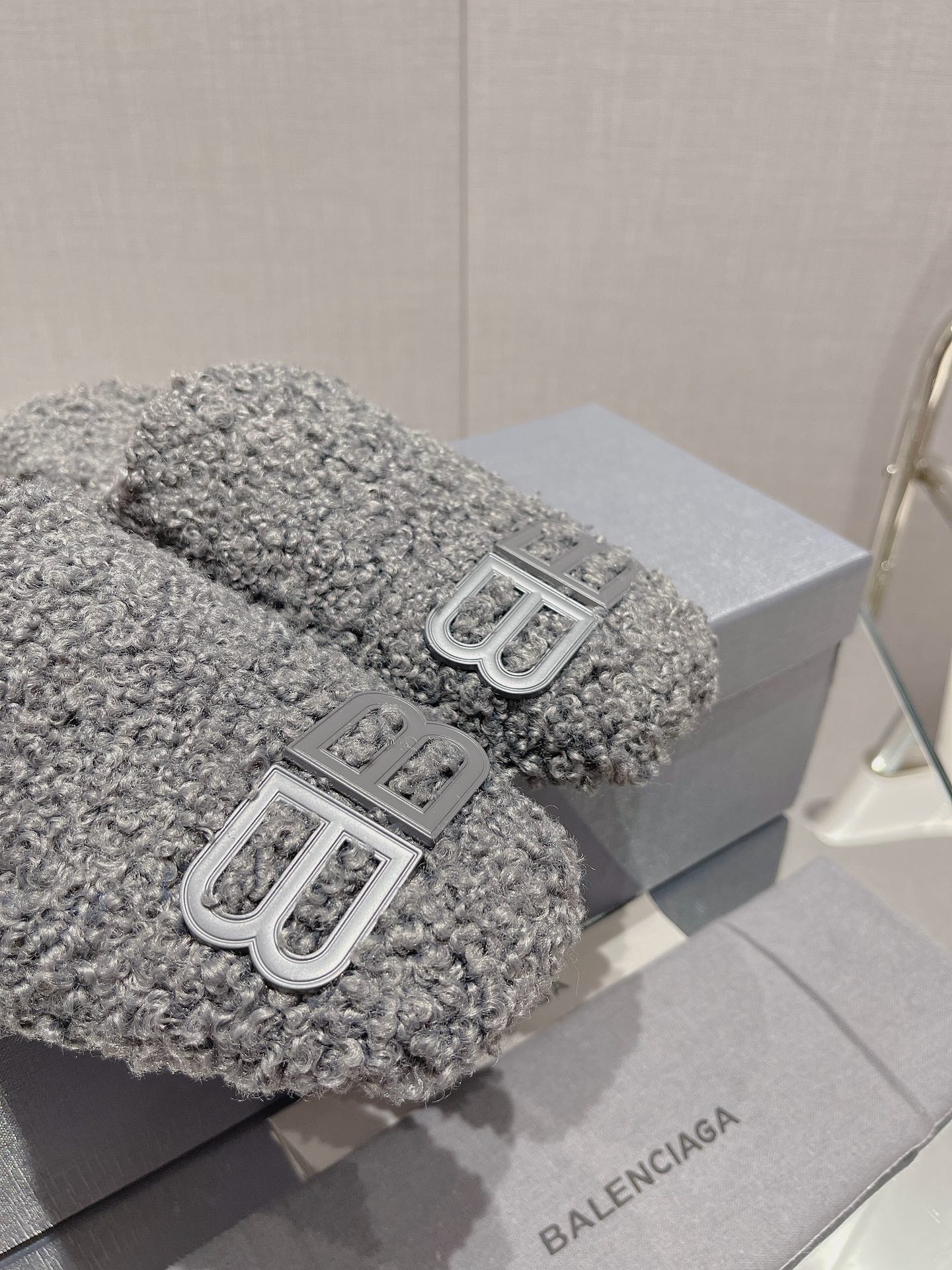 BALENCIAGA 25S MULES IN GRAY WOOL WITH LOGO