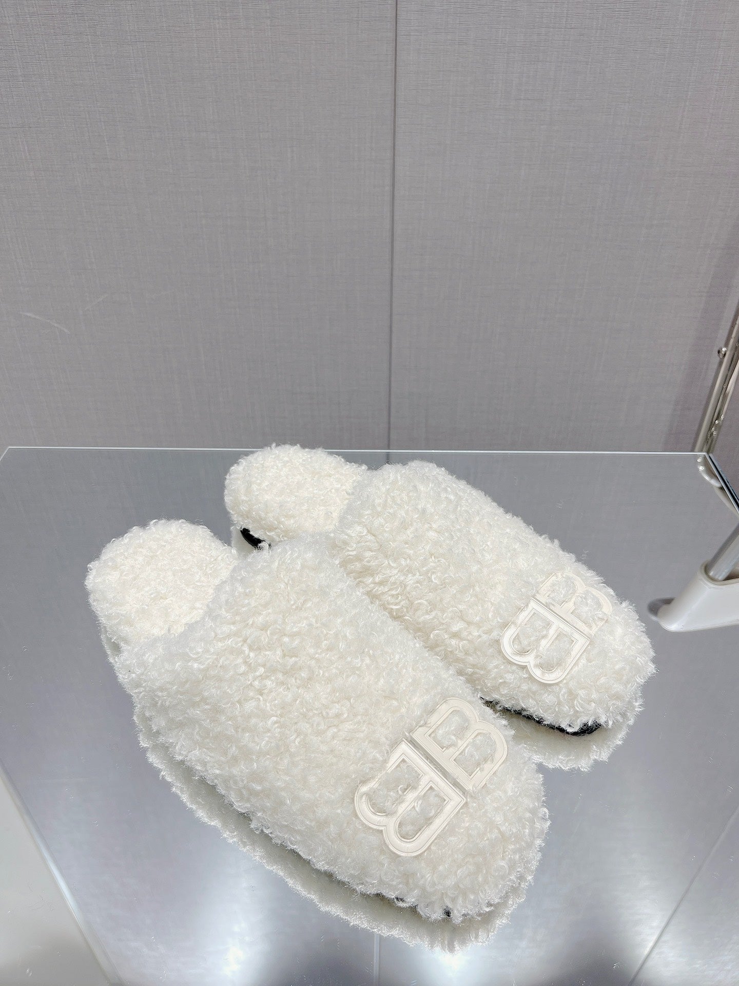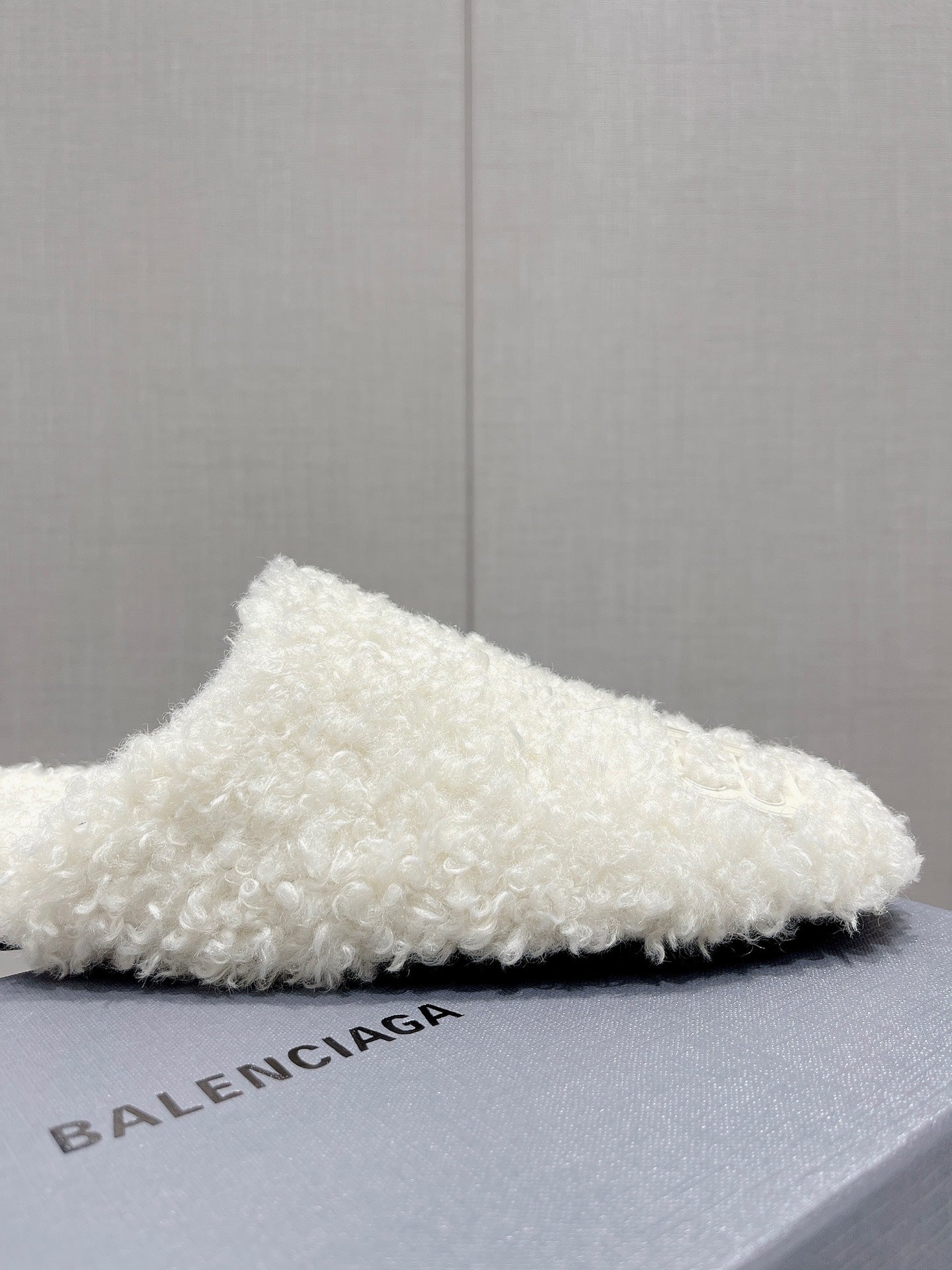 BALENCIAGA 25S MULES IN WHITE WOOL WITH LOGO