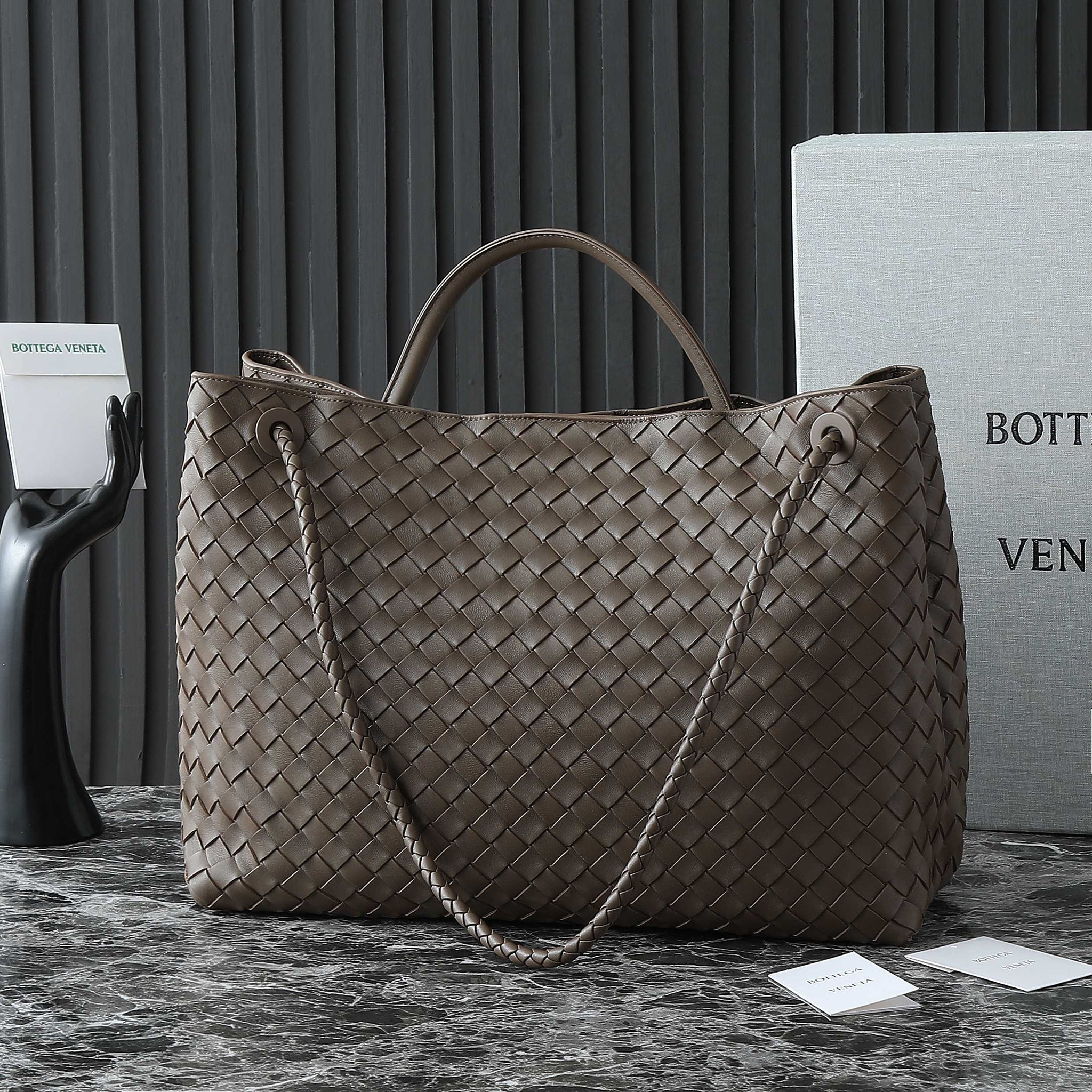 BOTTEGA VENETA 25S LARGE ANDIAMO 42 IN DARK BROWN CALFSKIN GOLD HARDWARE