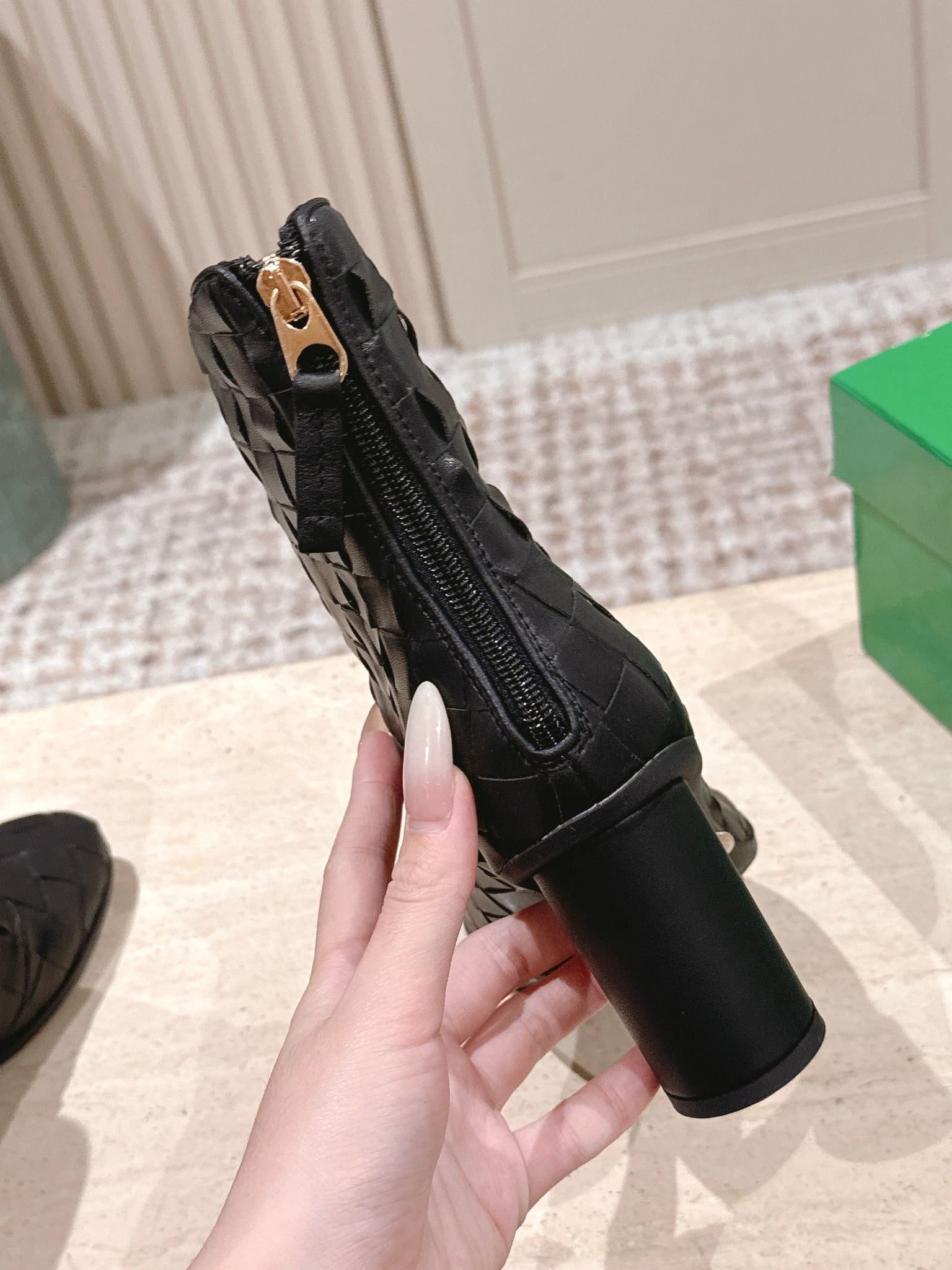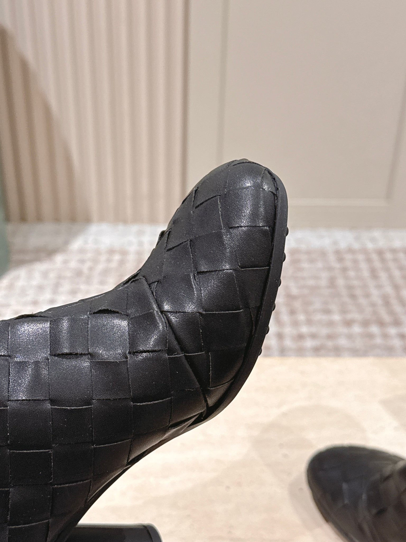 BOTTEGA VENETA 26S INTRECCIATO BOOTS 85 MM IN BLACK LAMBSKIN
