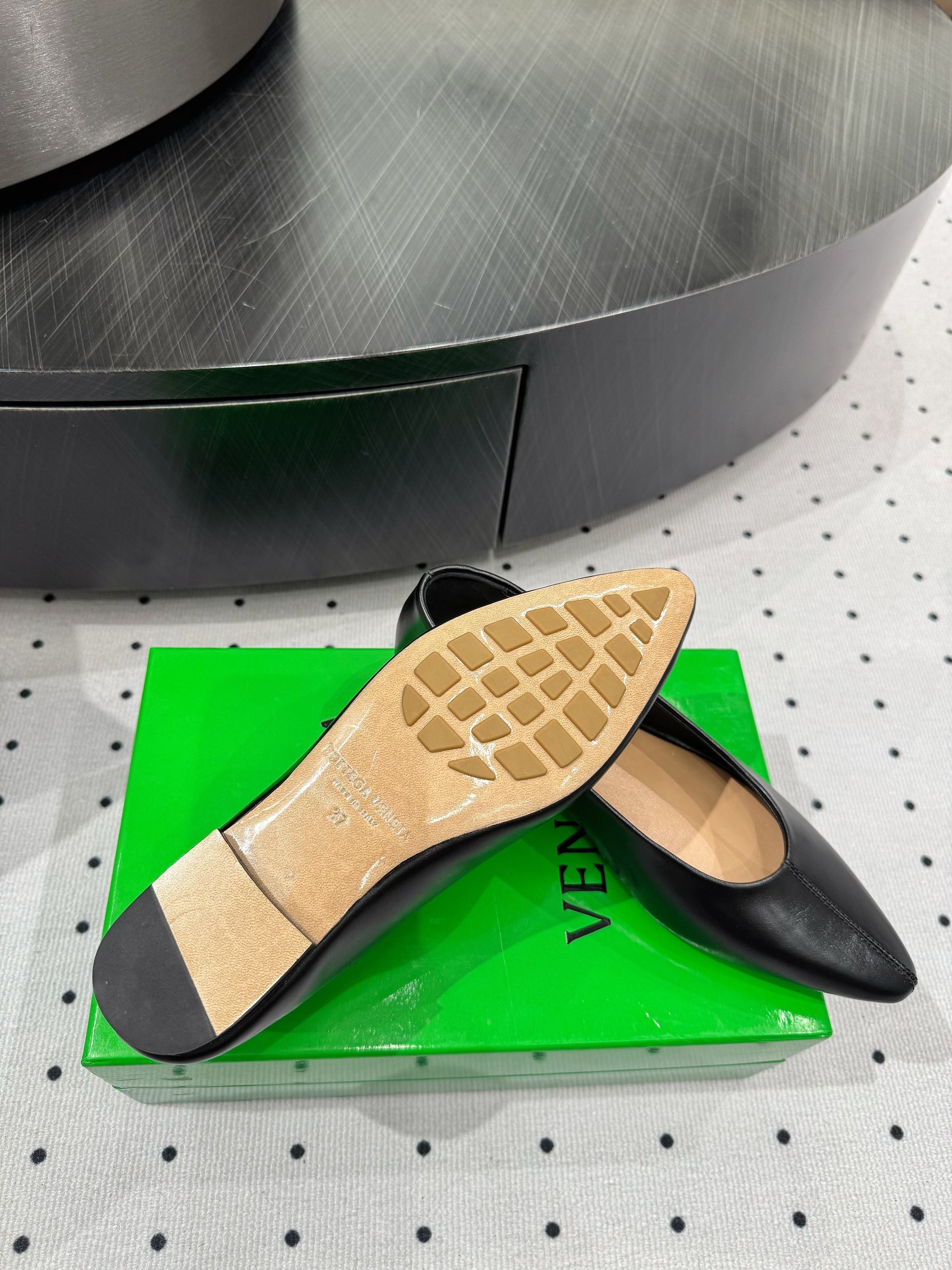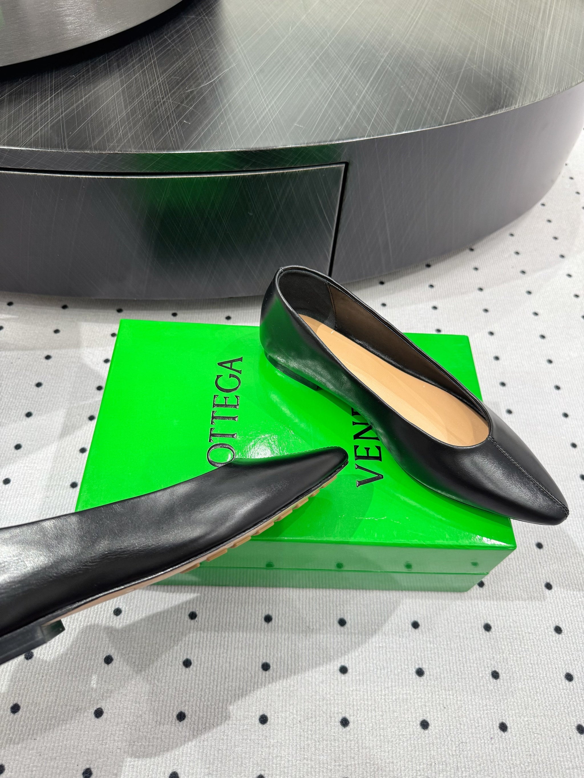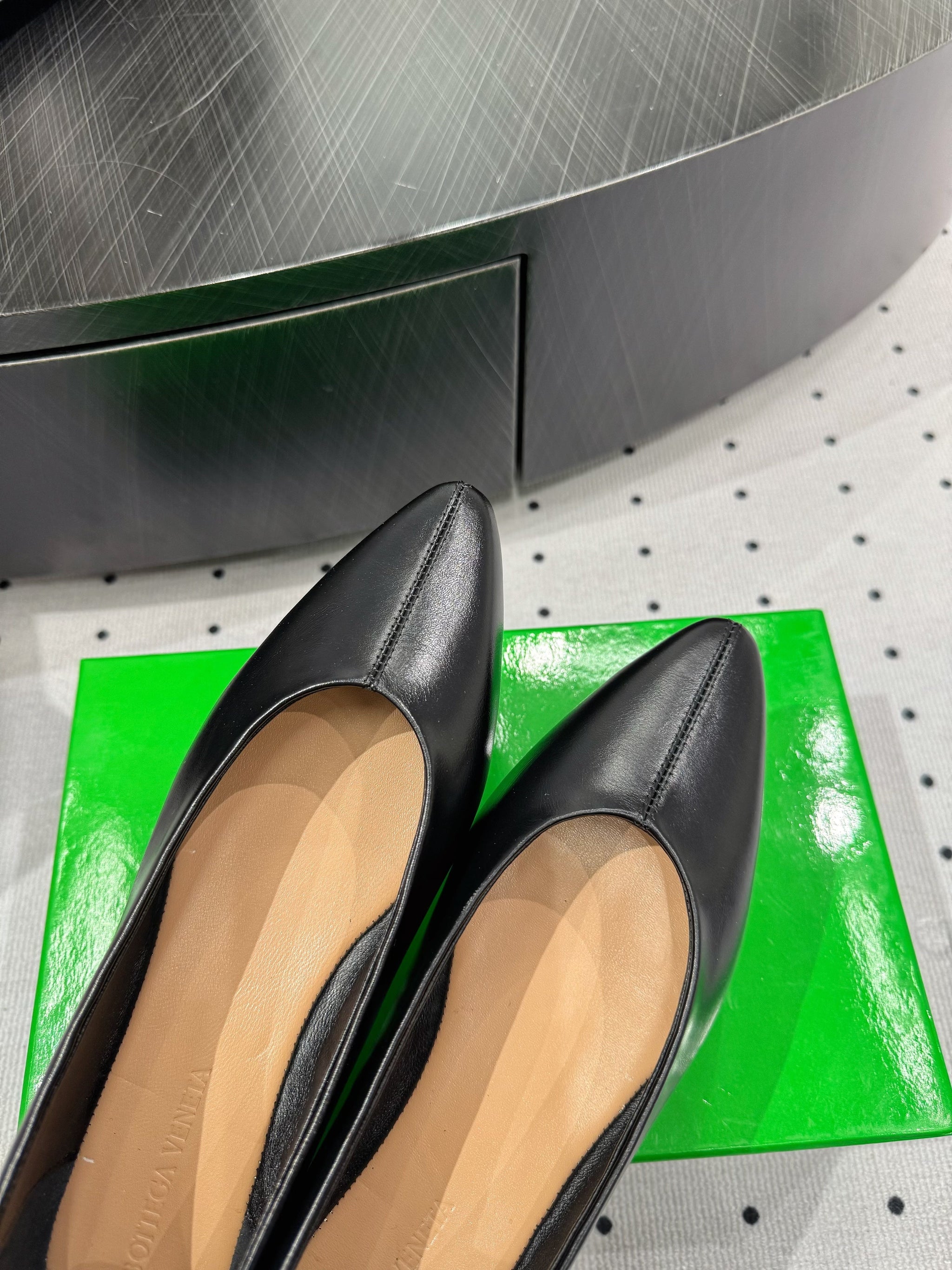 BOTTEGA VENETA 26S BALLET FLATS IN BLACK CALFSKIN