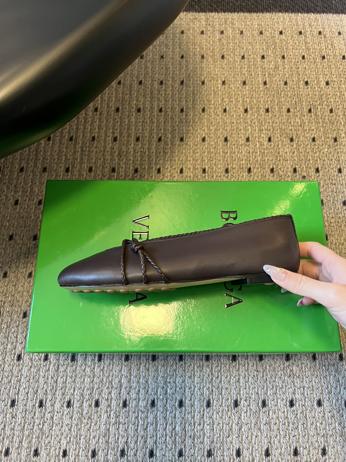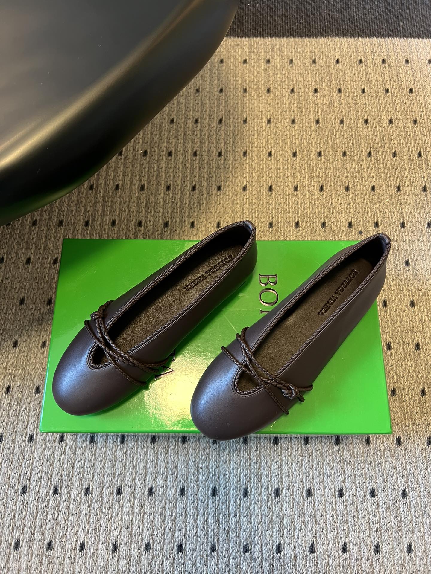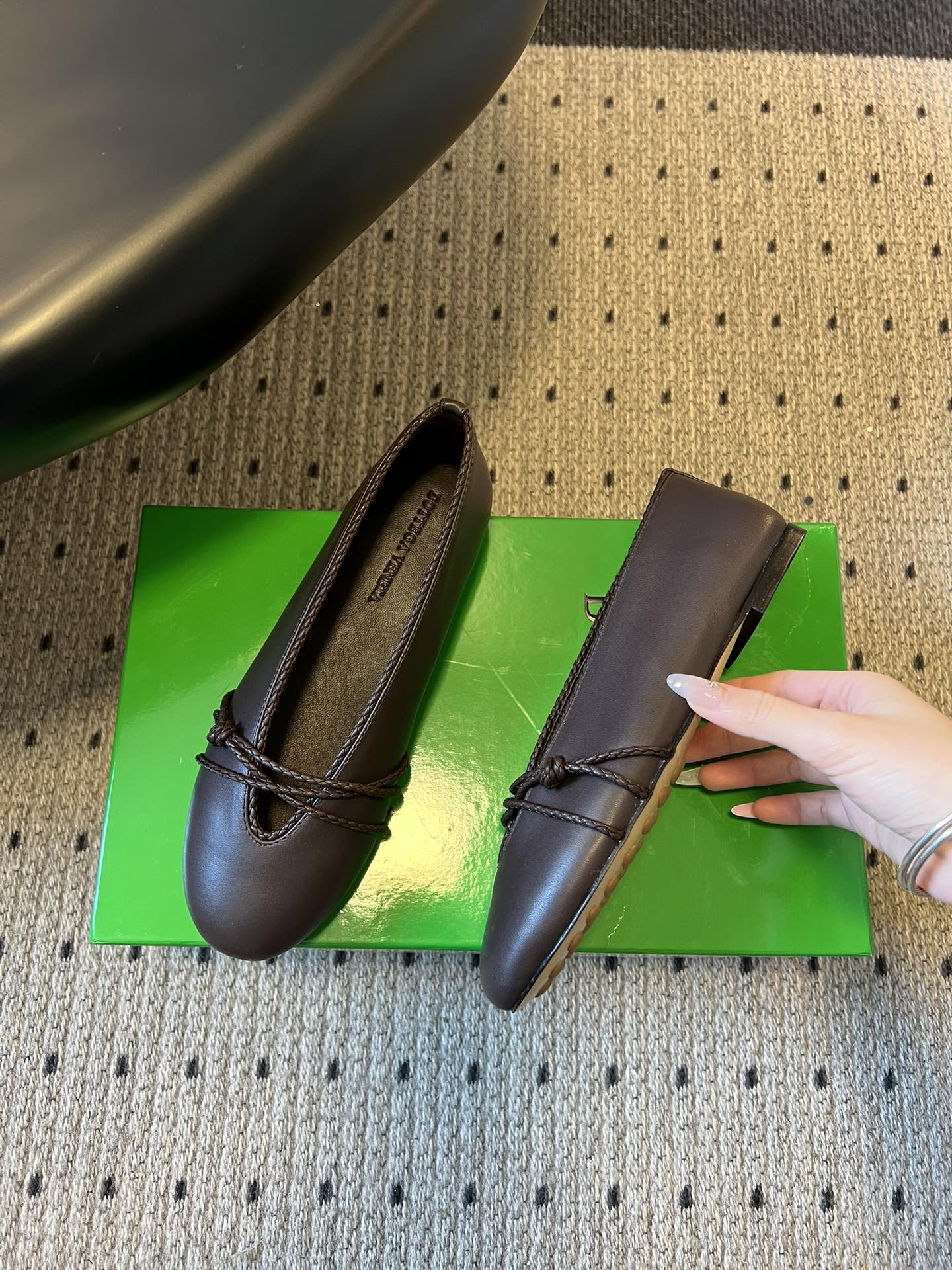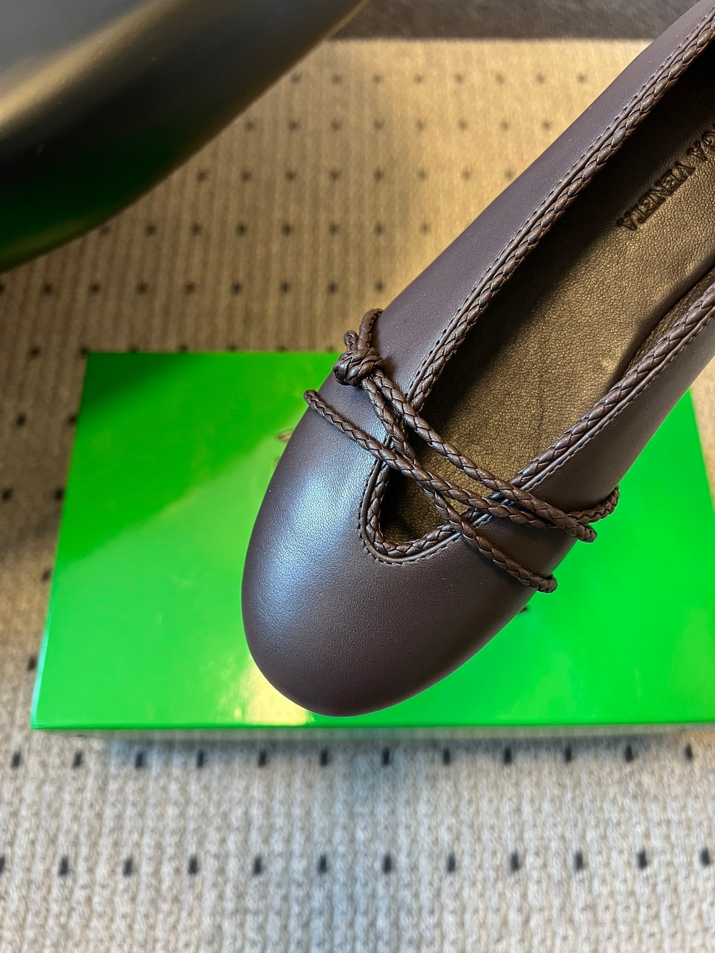 BOTTEGA VENETA 26S ESPADRILLE BALLET FLATS IN DARK BROWN LAMBSKIN