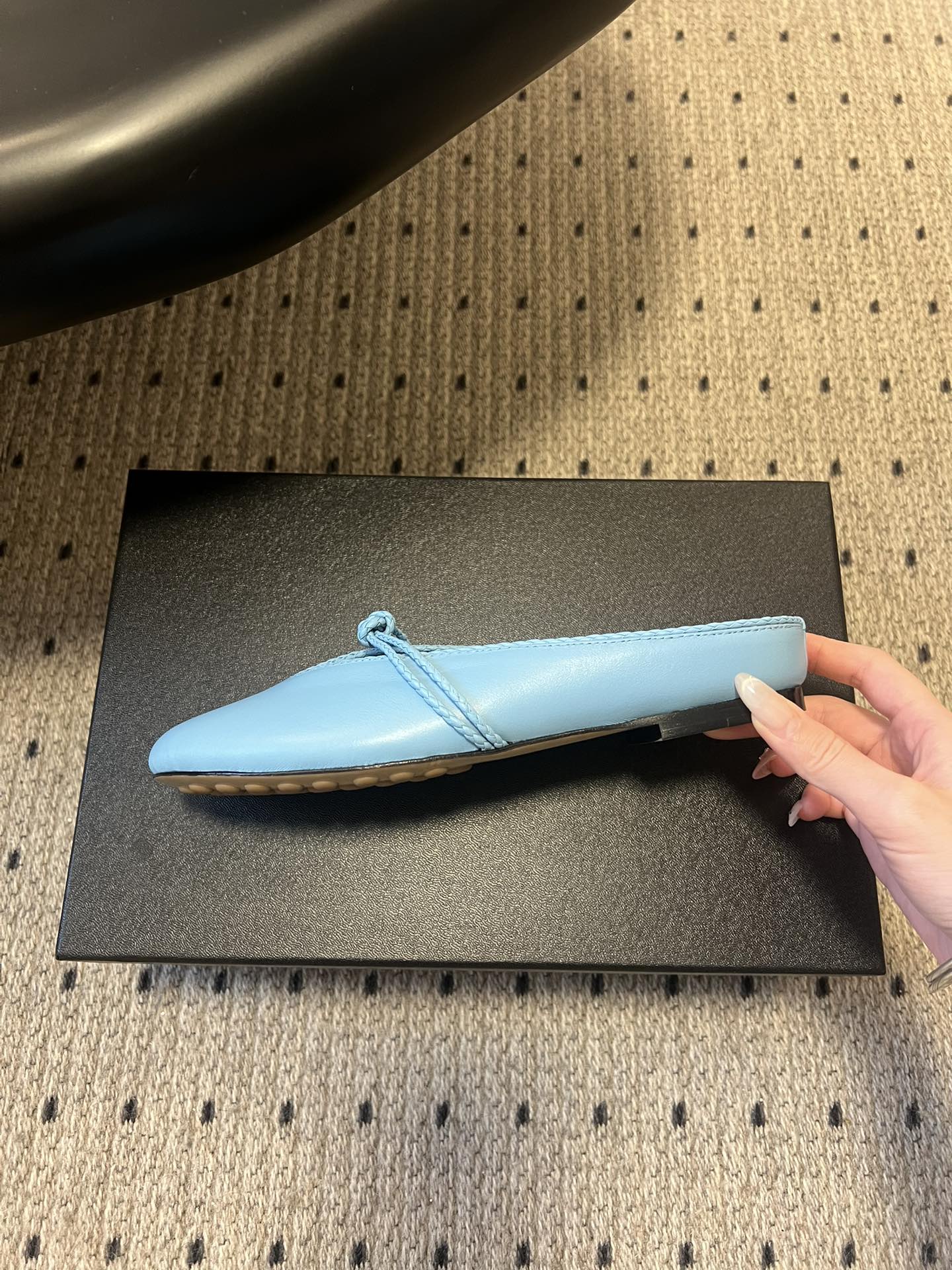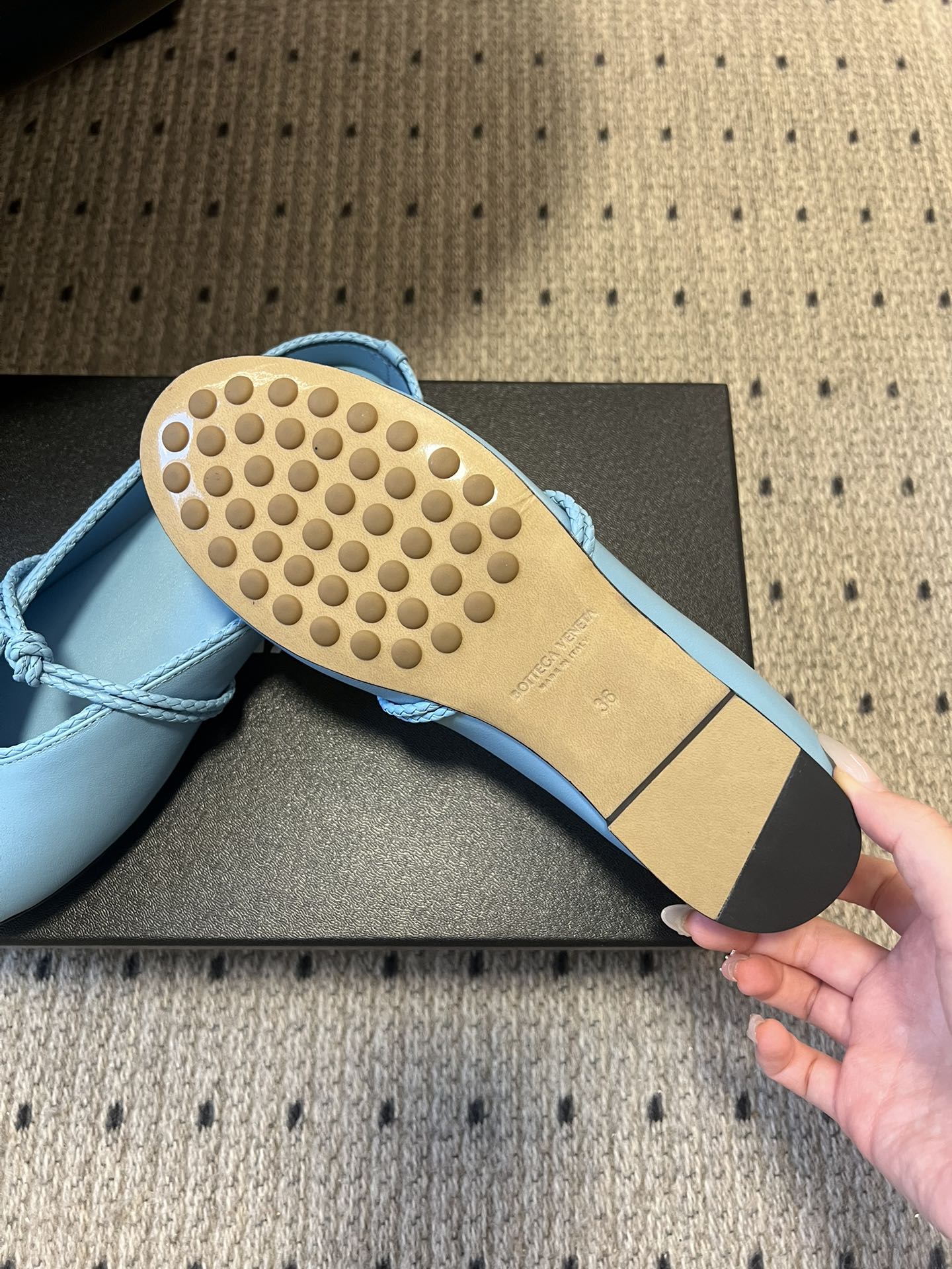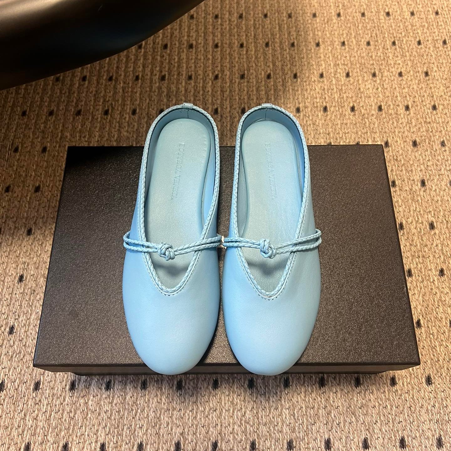 BOTTEGA VENETA 26S FLAT MULES IN BLUE LAMBSKIN