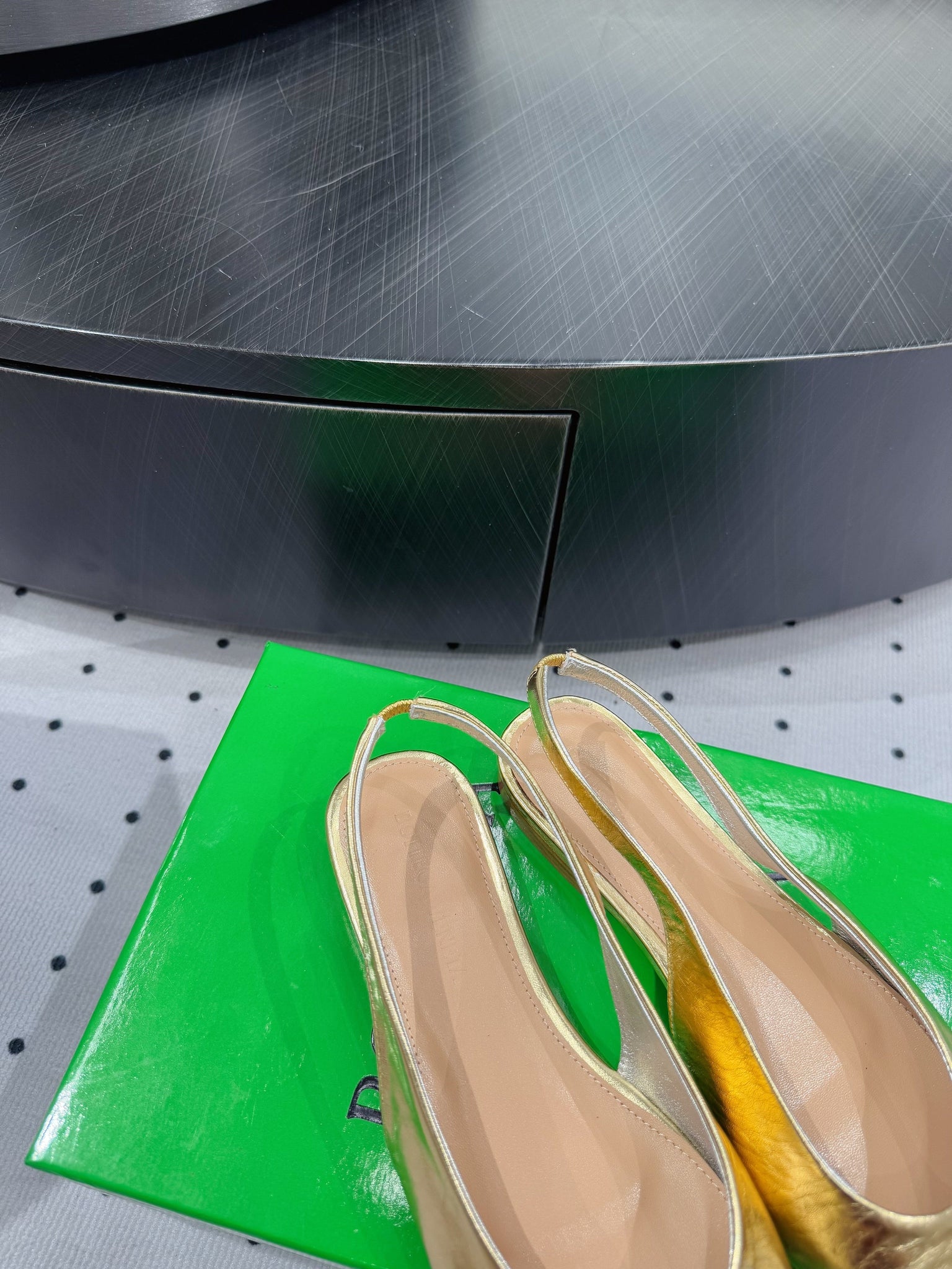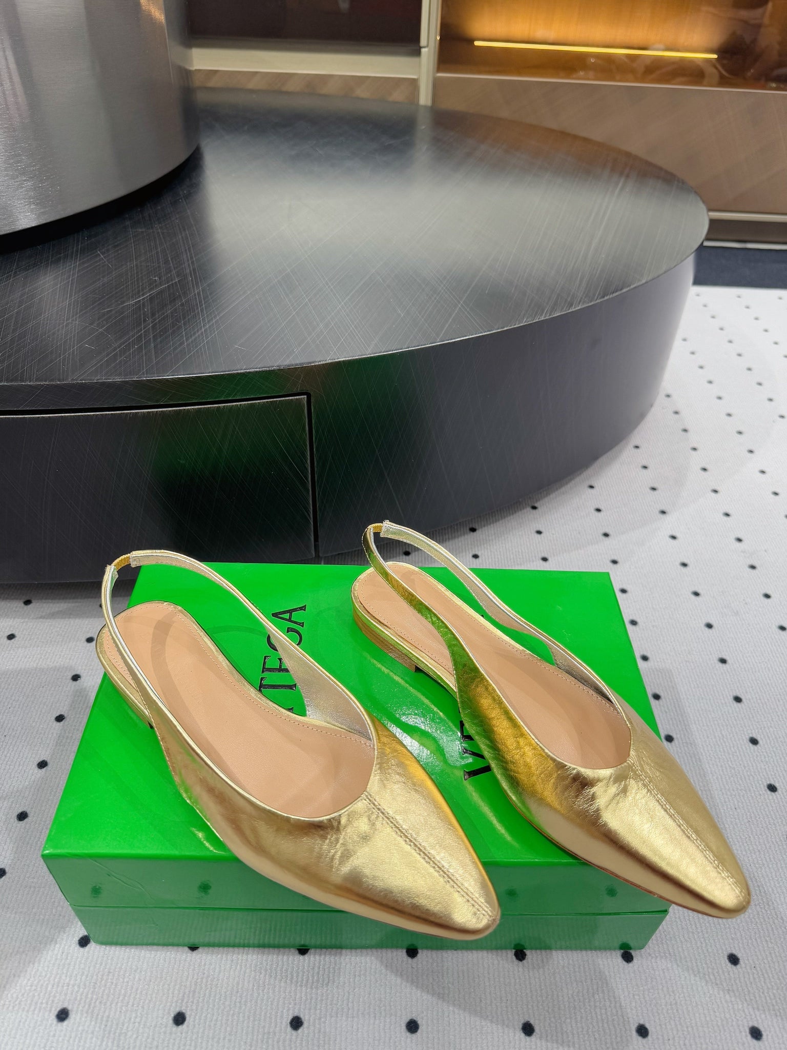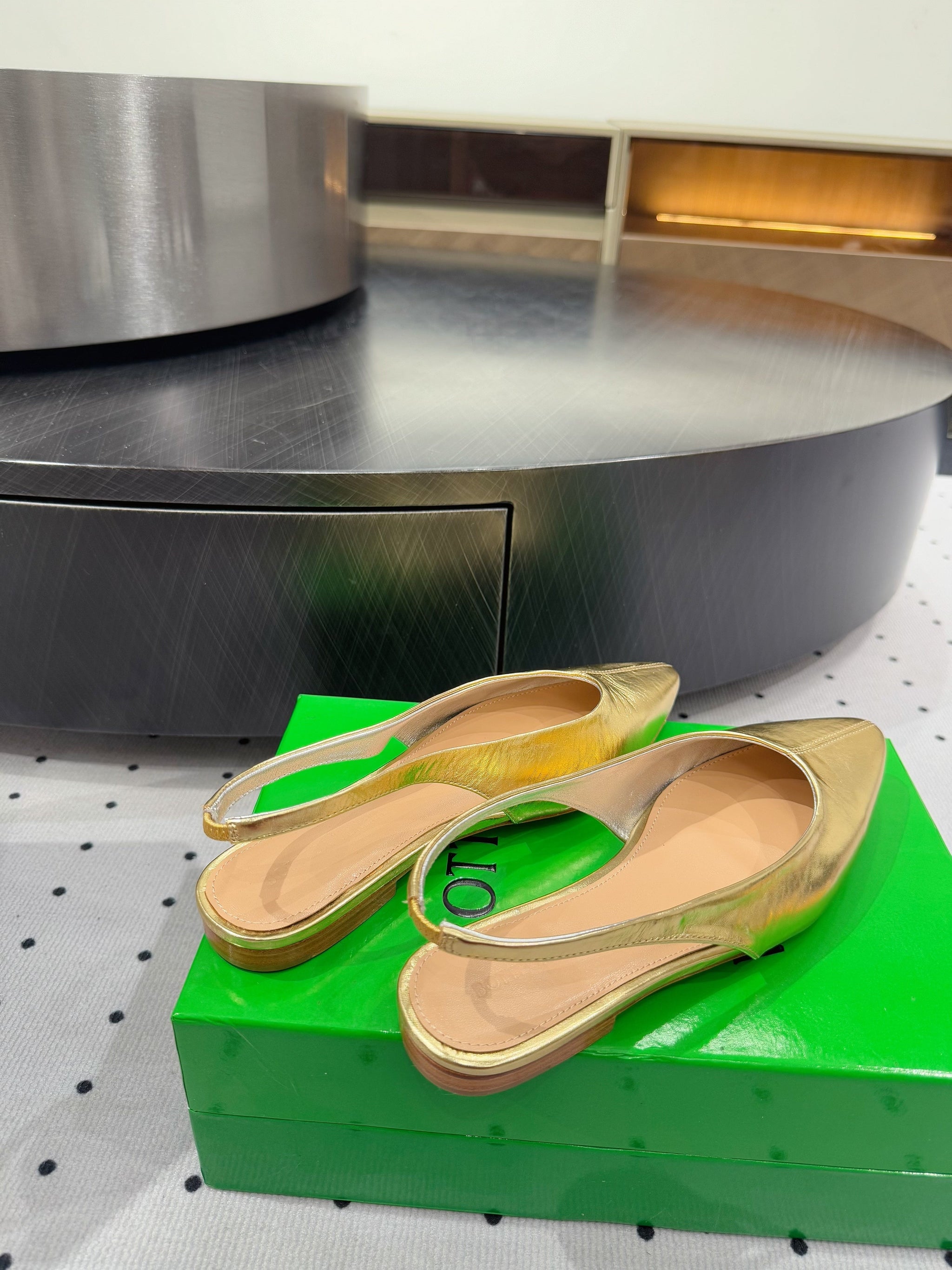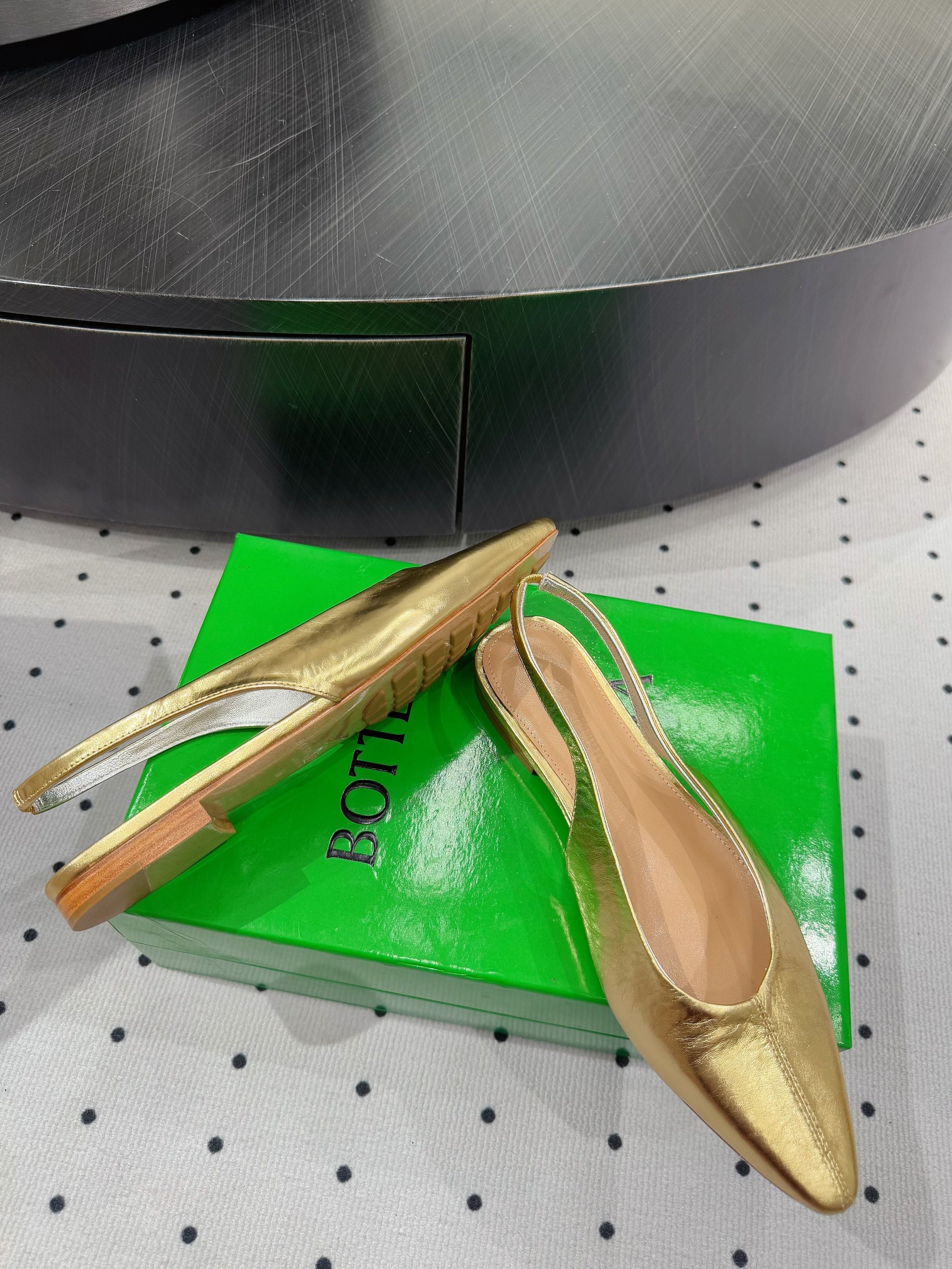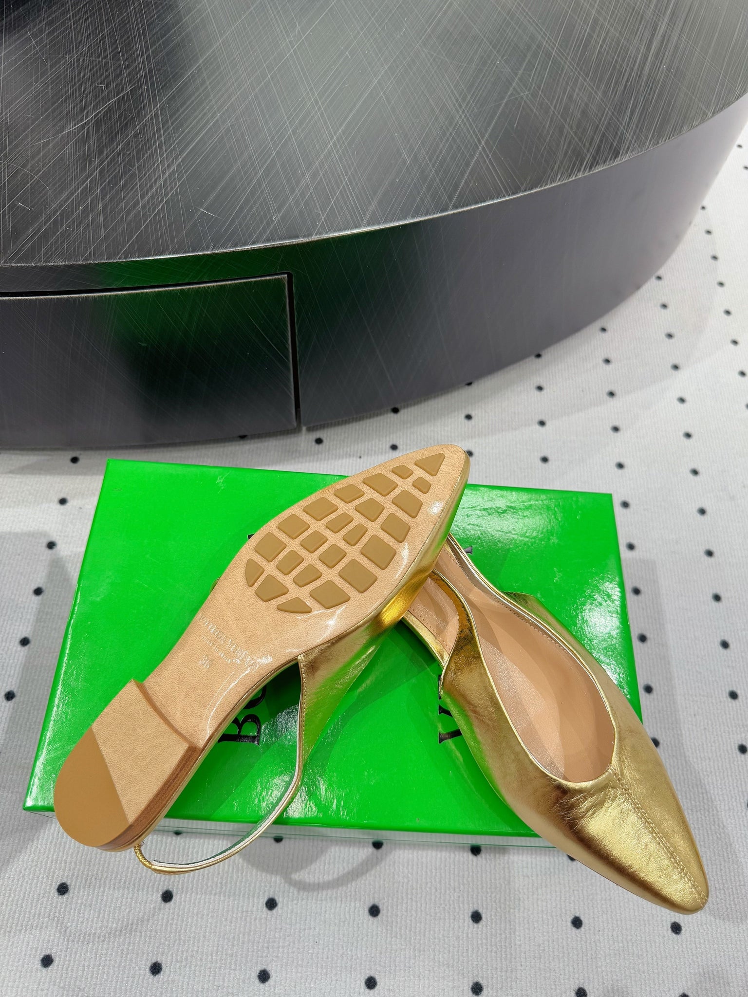 BOTTEGA VENETA 26S SLINGBACK FLATS IN GOLD CALFSKIN