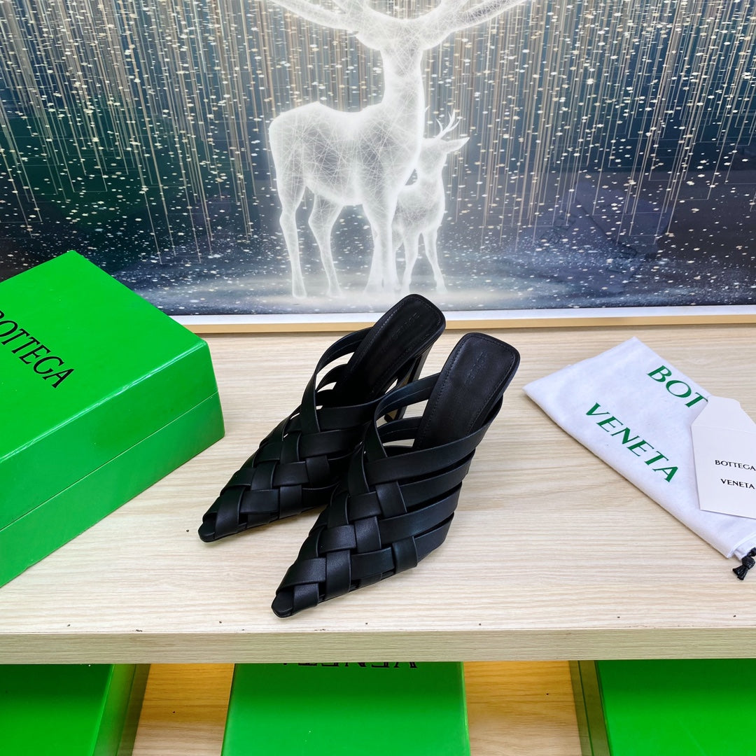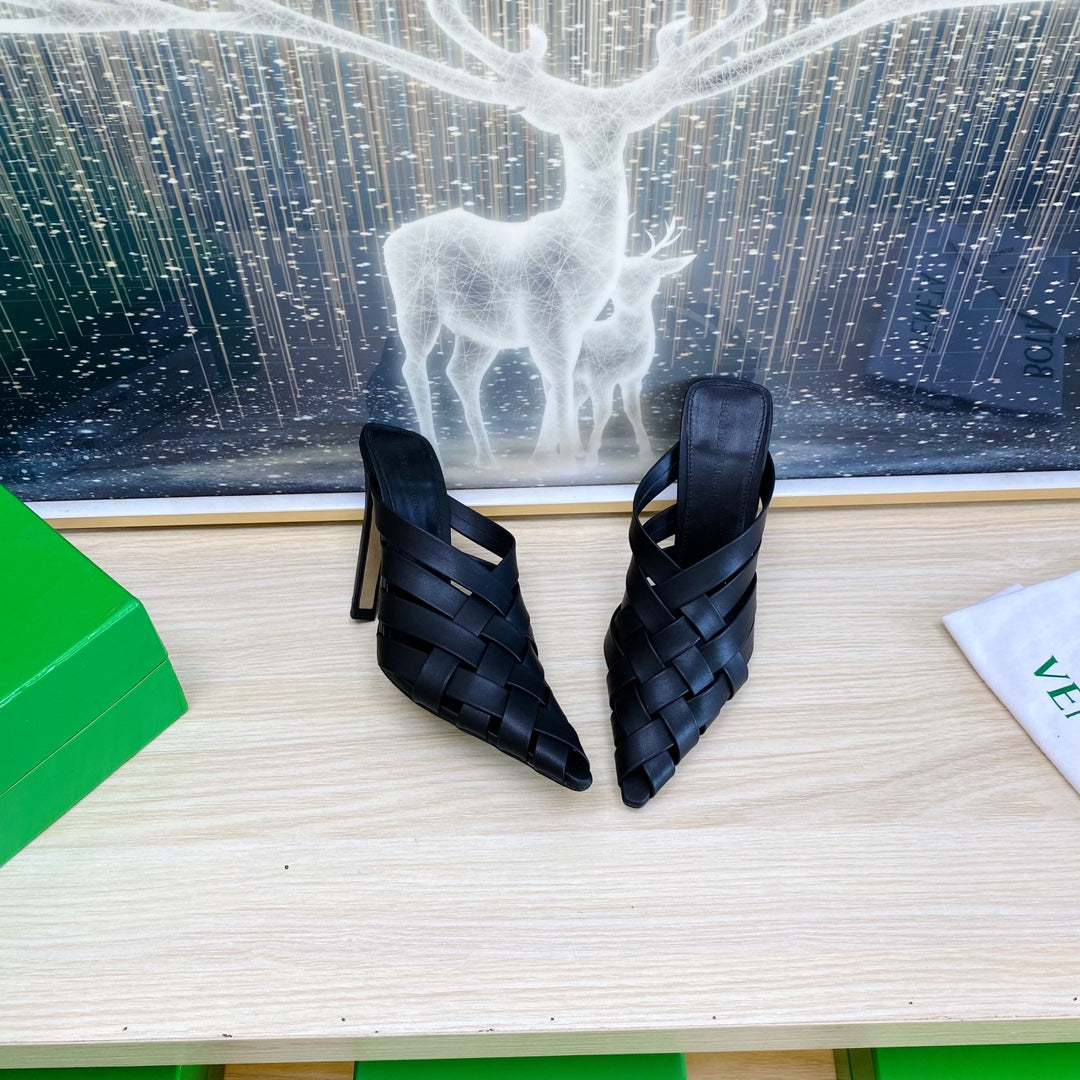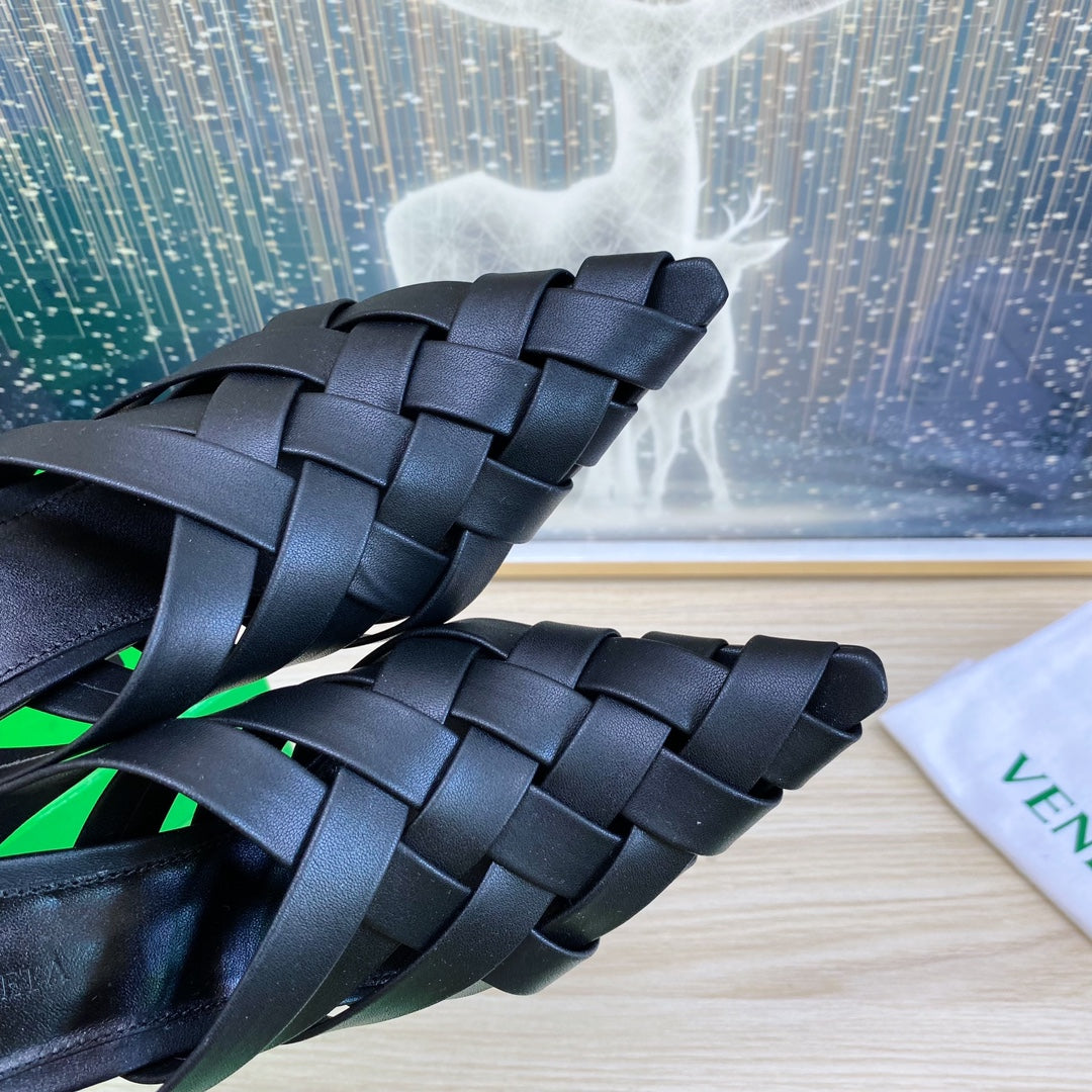 ALFIE LEATHER HIGH MULES IN BLACK CALFSKIN WITH WOVEN DESIGN
