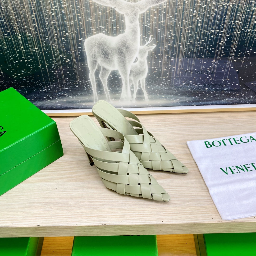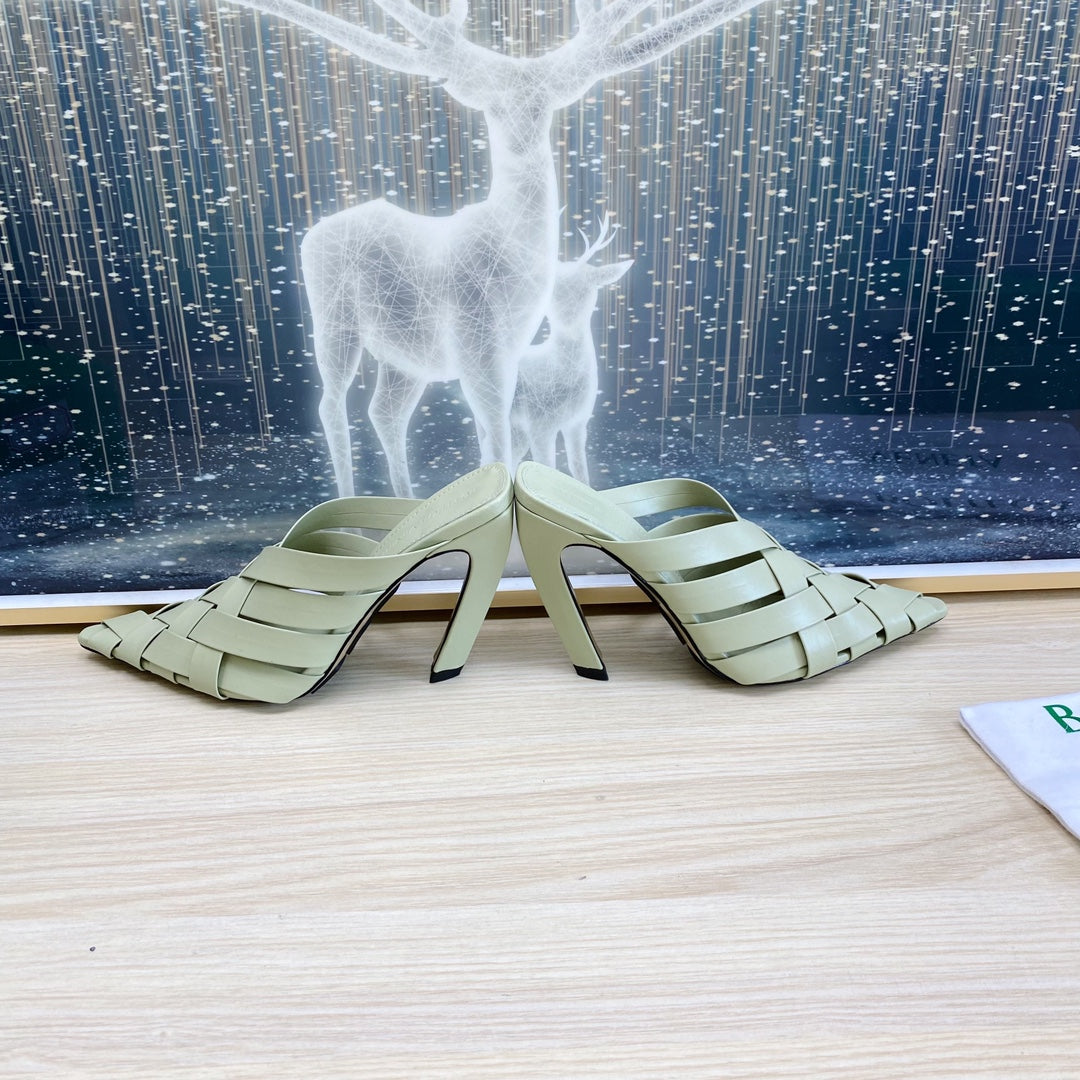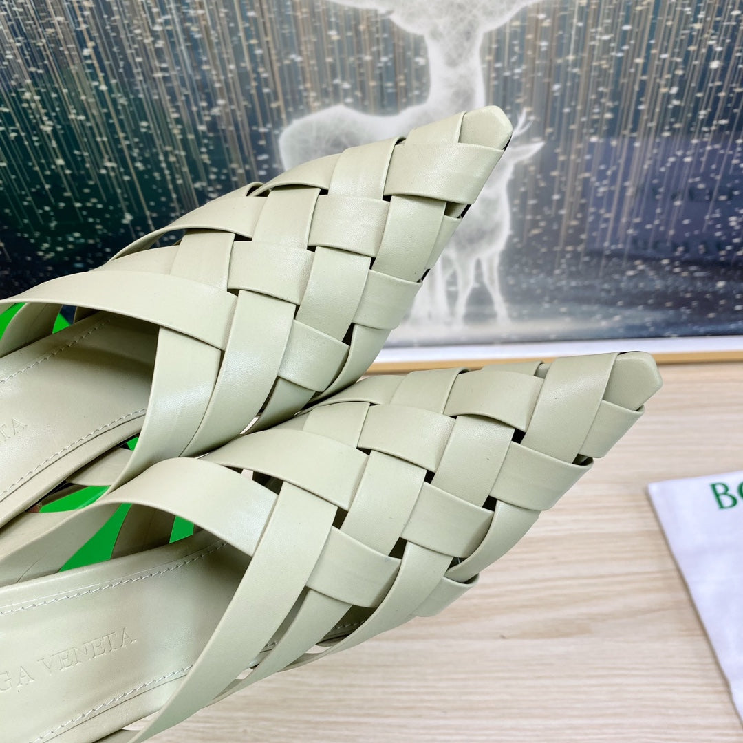 ALFIE LEATHER HIGH MULES IN PEARL GRAY CALFSKIN WITH WOVEN DESIGN