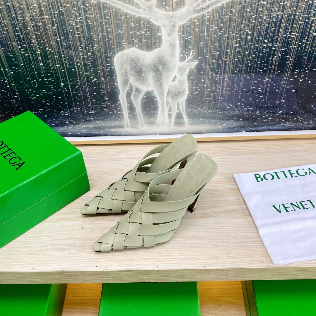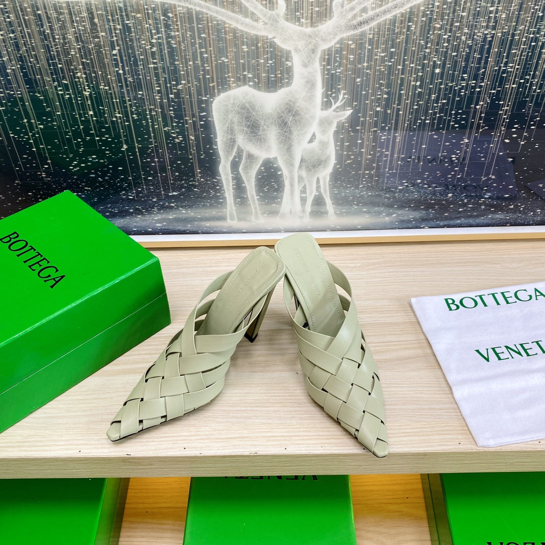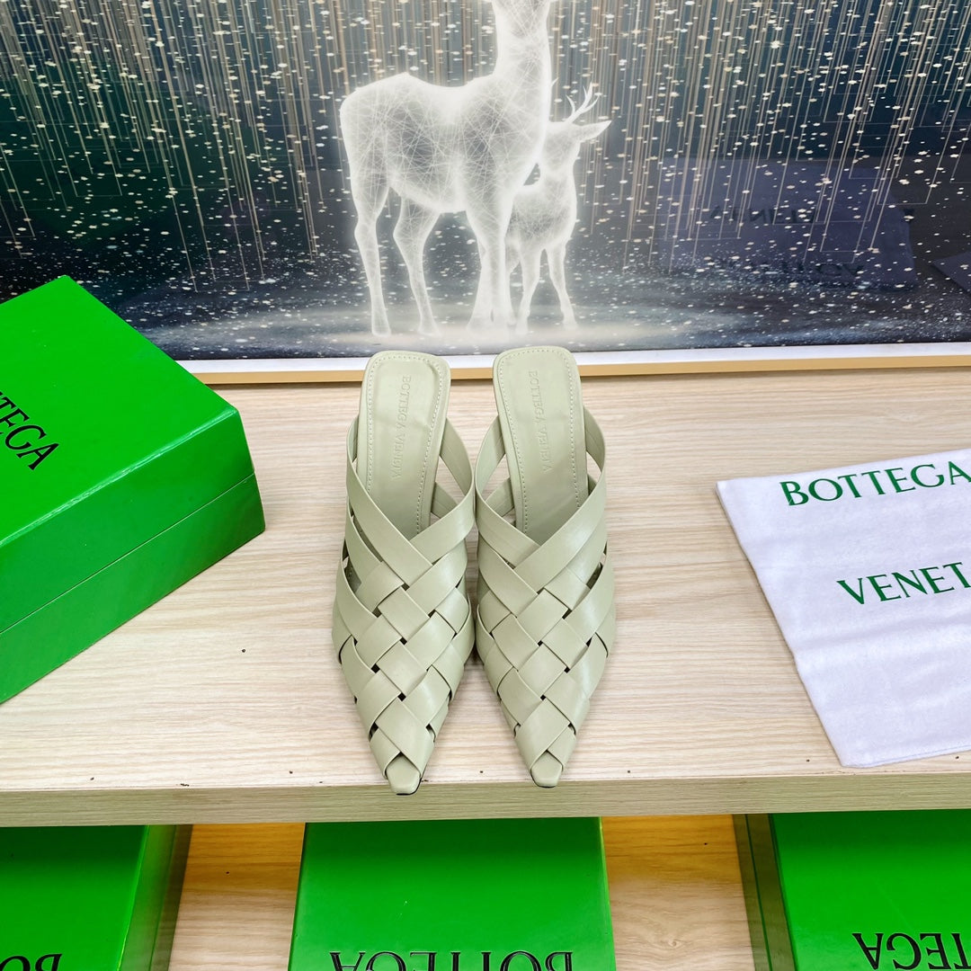 ALFIE LEATHER HIGH MULES IN PEARL GRAY CALFSKIN WITH WOVEN DESIGN