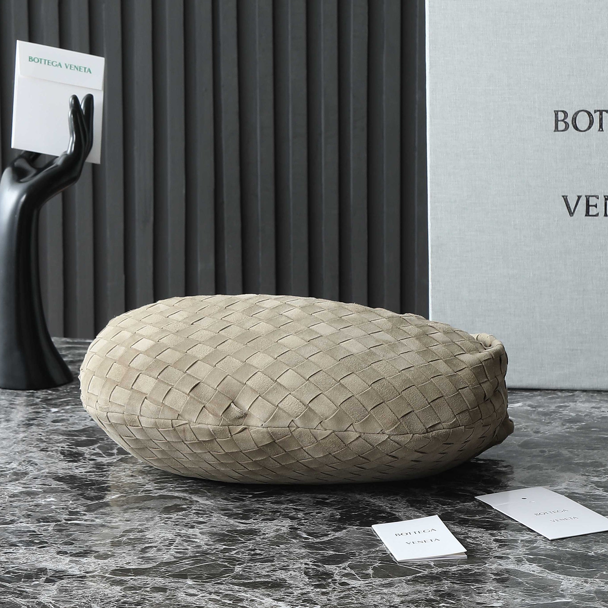 BOTTEGA VENETA 25S SMALL JODIE 36 IN MUTED TAUPE SUEDE GOLD HARDWARE