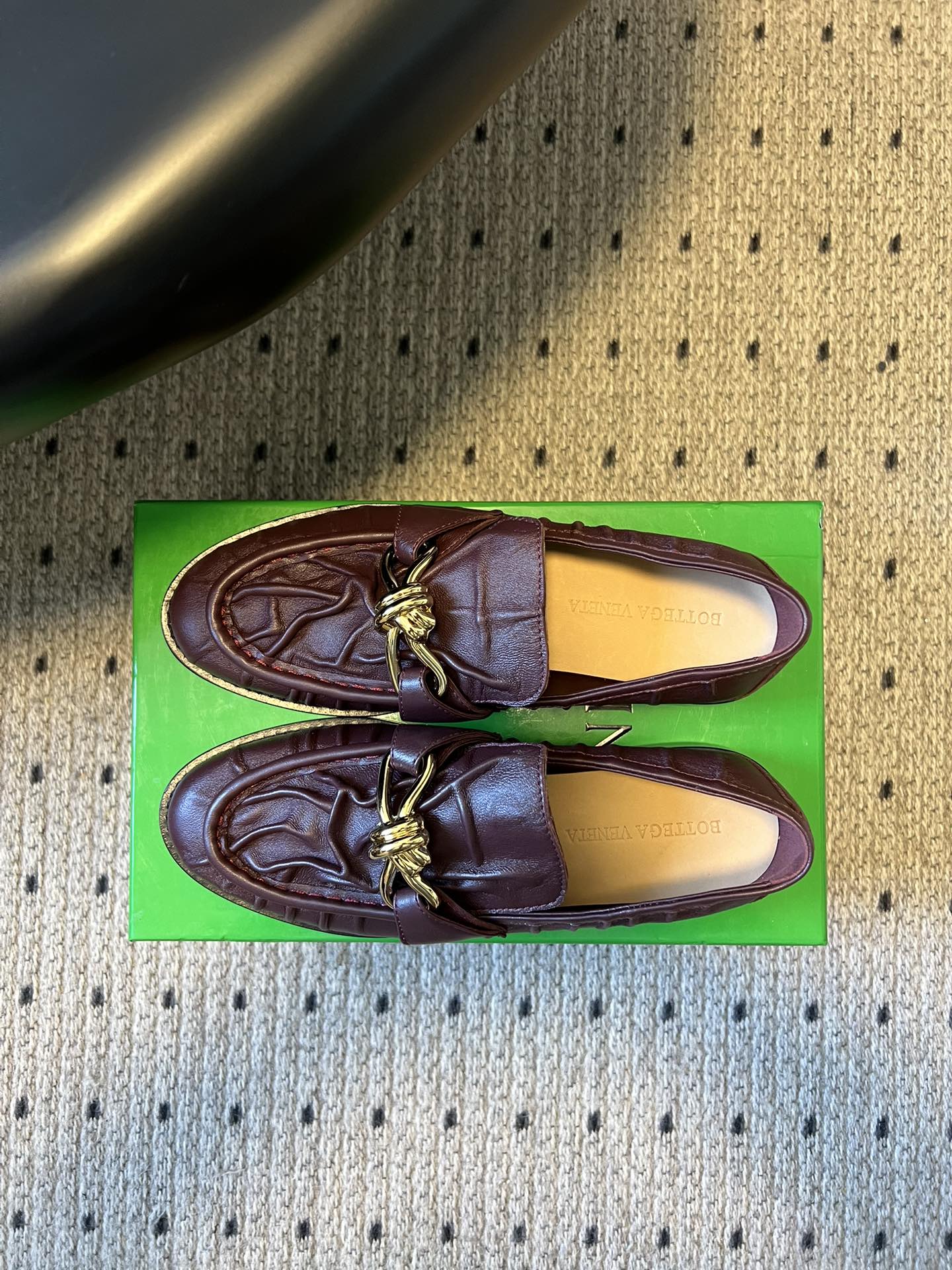 BOTTEGA VENETA 26S LOAFERS IN DARK BROWN LAMBSKIN WITH GOLD HARDWARE