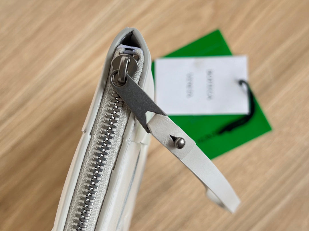 LARGE CASSETTE POUCH 35 IN WHITE CALFSKIN