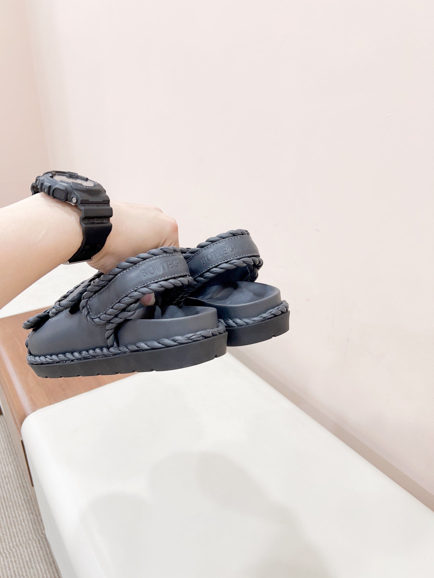 REFINED DAD SANDAL IN BLACK LAMBSKIN