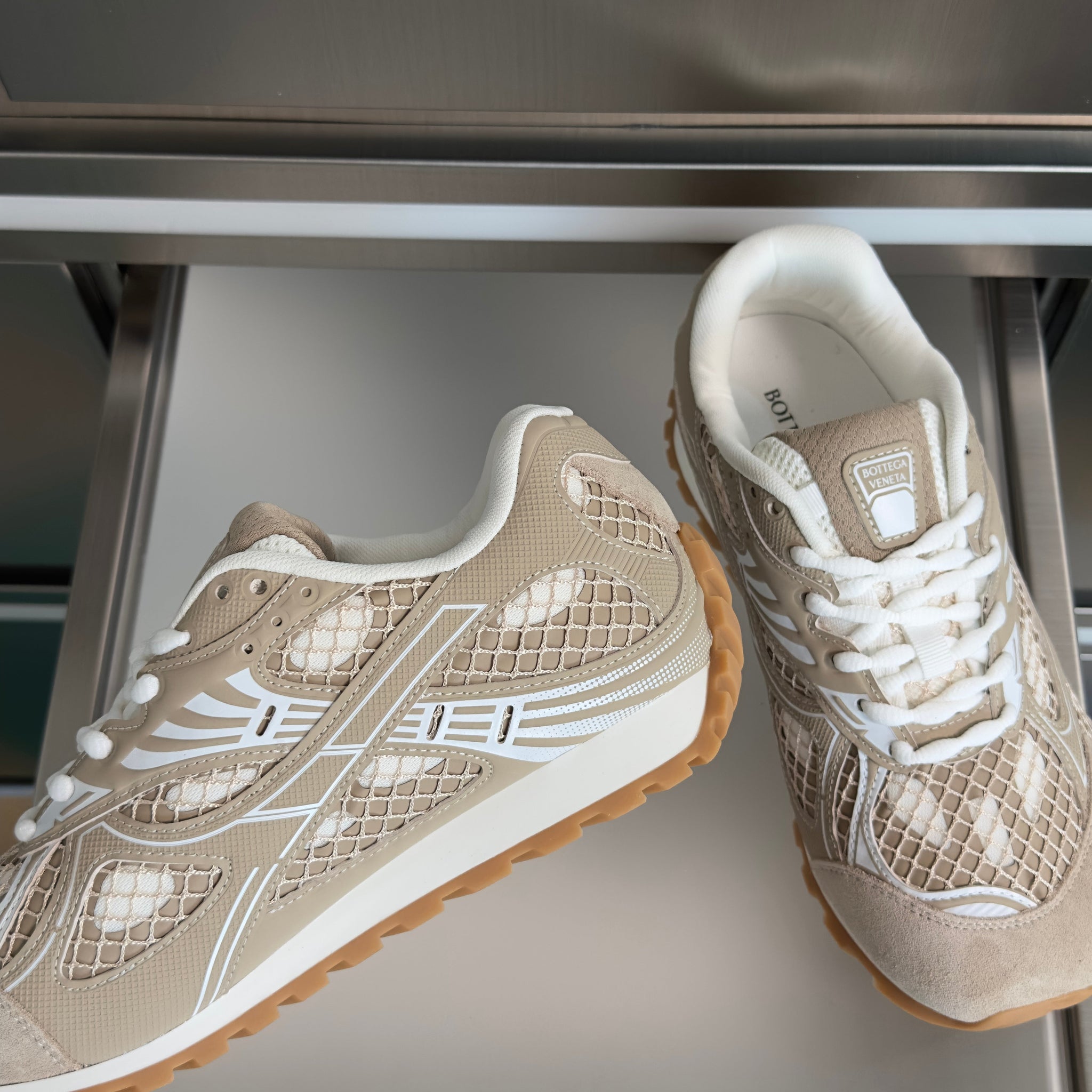 BOTTEGA VENETA 26S SNEAKERS IN BEIGE TPU MATERIAL AND SUEDE