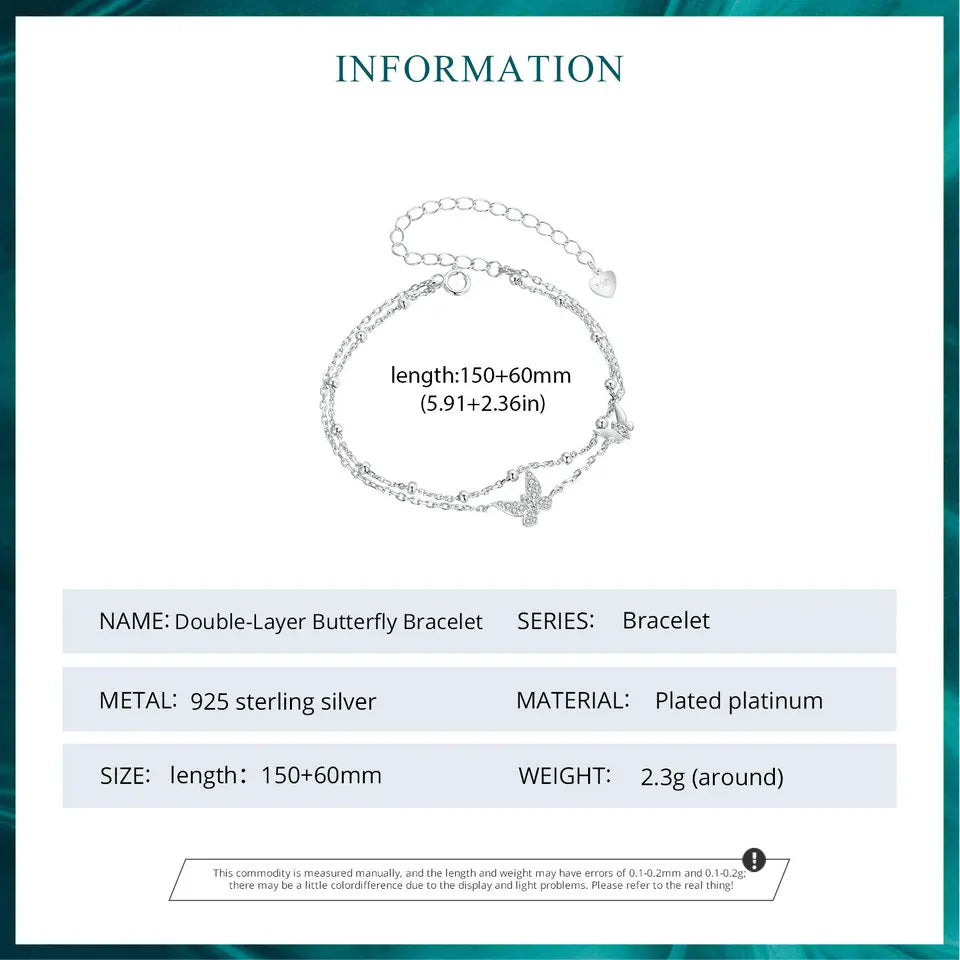 Double-Layer Butterfly Bracelet 925 Sterling Silver CZ Layered Bracelet