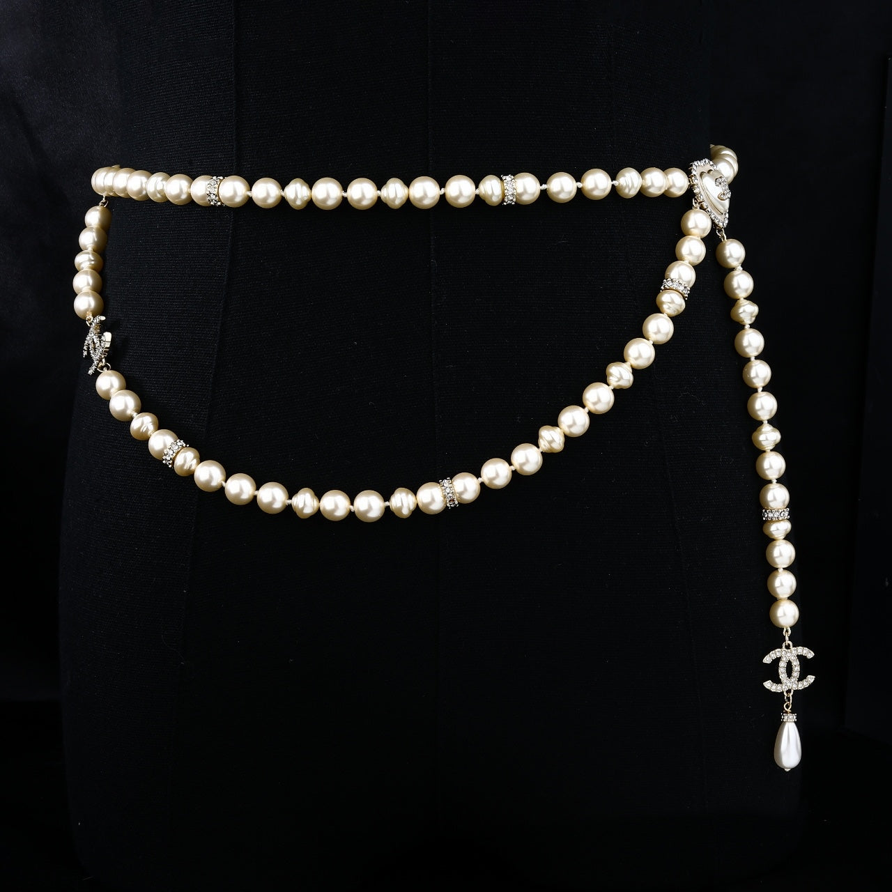 CHANEL 25S CHAIN BELT IN WHITE PEARL 614476