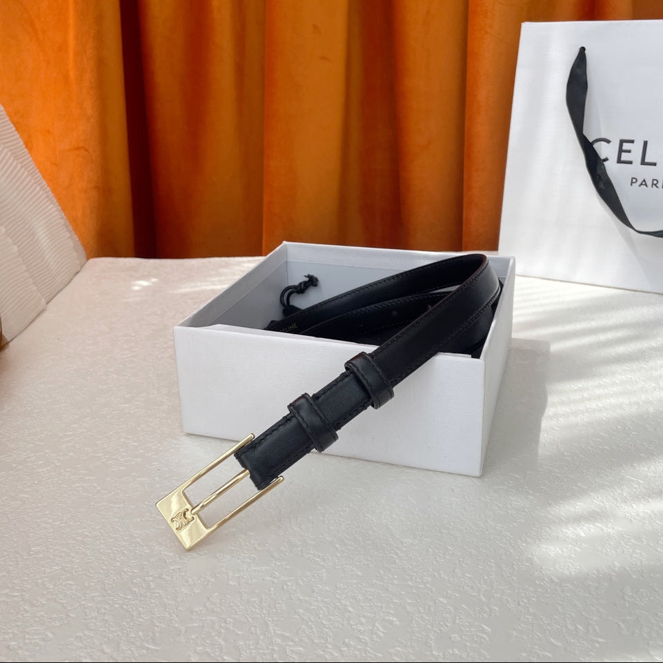 BELT 18MM IN BLACK CALFSKIN WITH RECTANGULAR BUCKLE EMBOSSED LOGO