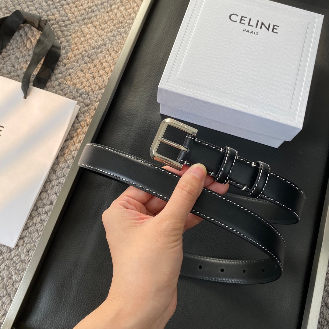 BELT 25MM IN BLACK REVERSIBLE ITALIAN CALFSKIN WITH VINTAGE SILVER BUCKLE WHITE STITCHING