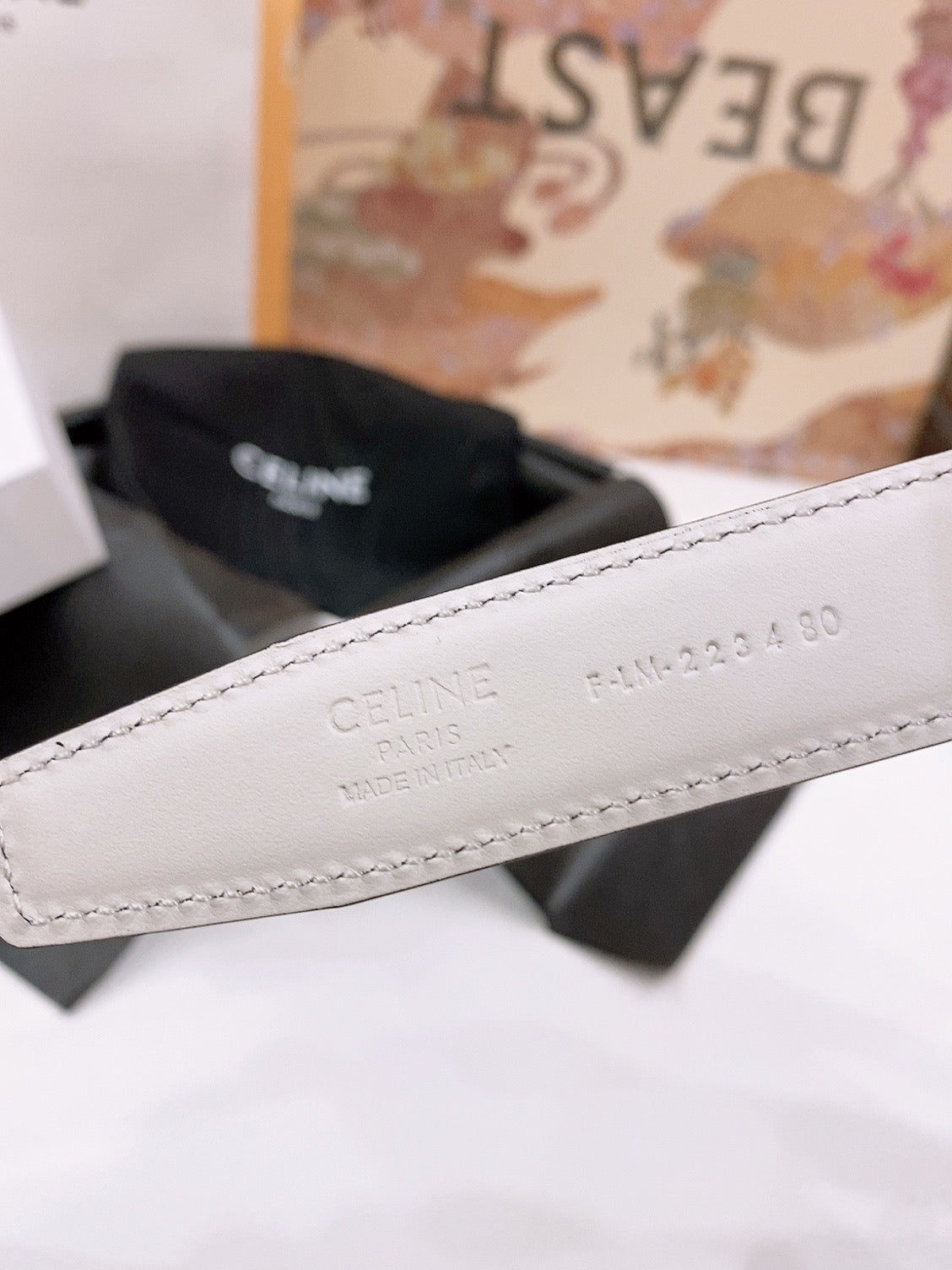 CELINE 25S BELT 25MM REVERSIBLE TRIOMPHE IN BURGUNDY CALFSKIN 565534