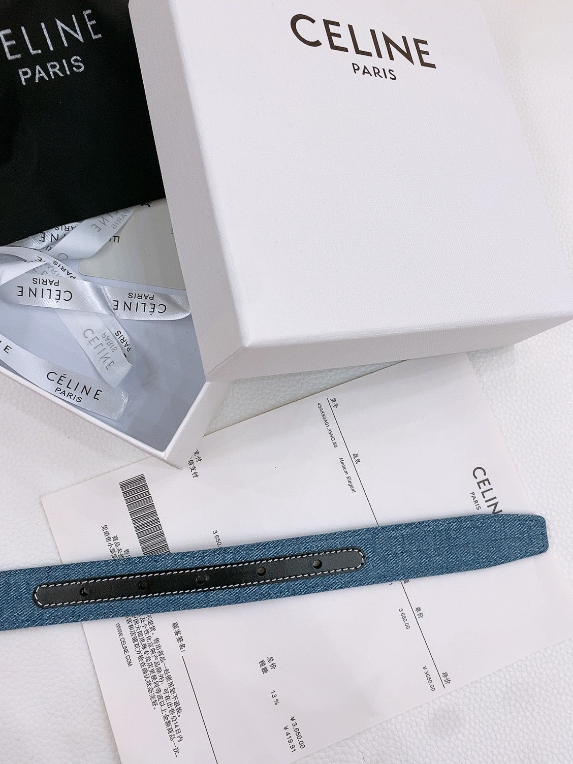 CELINE 25S BELT TRIOMPHE TAURILLON 25MM IN BLACK CALFSKIN AND DENIM 558346