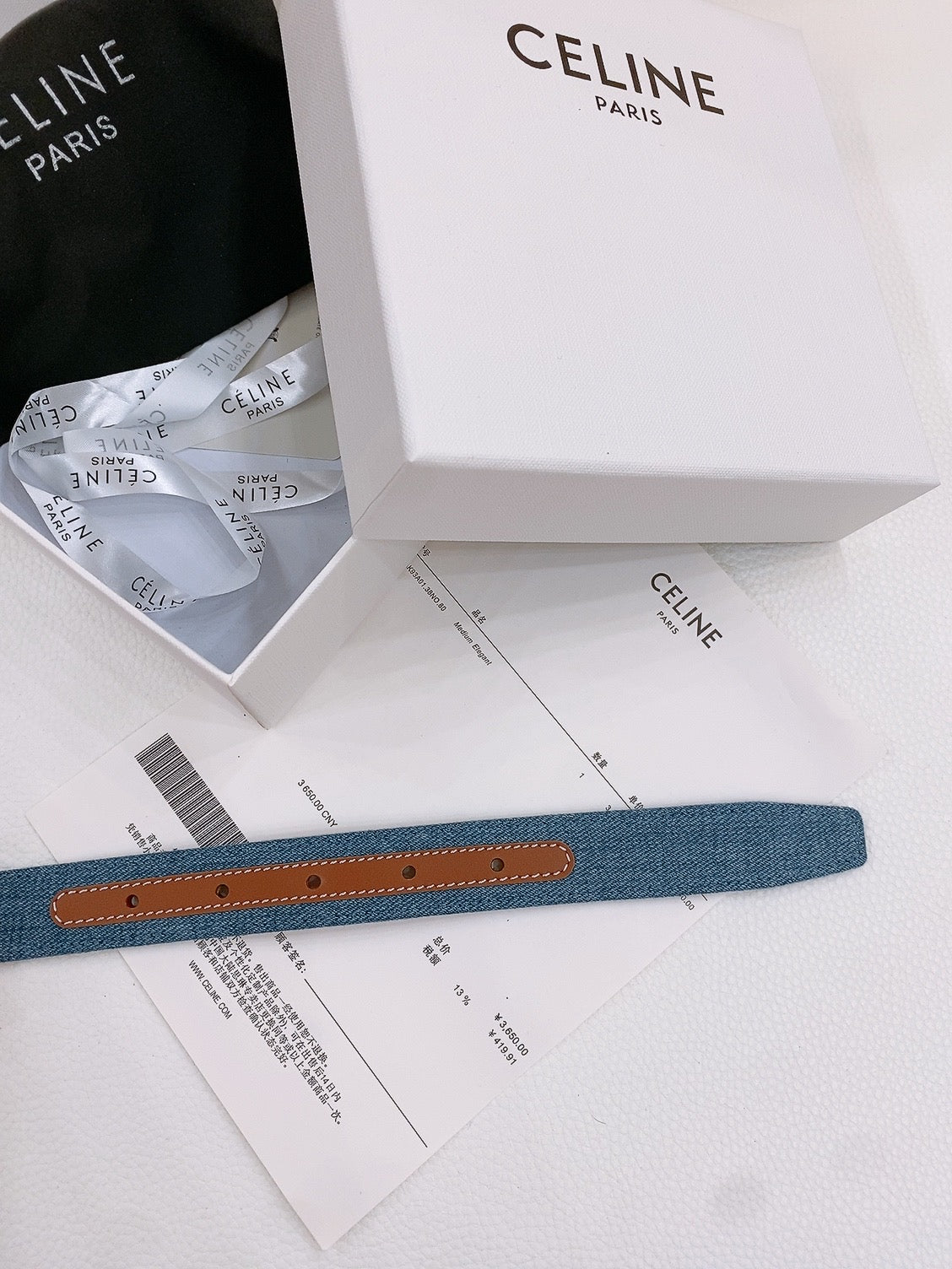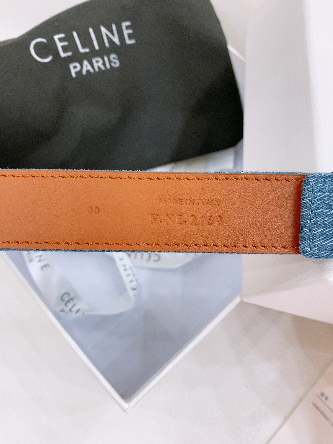 CELINE 25S BELT TRIOMPHE TAURILLON 25MM IN BROWN CALFSKIN AND DENIM 558353