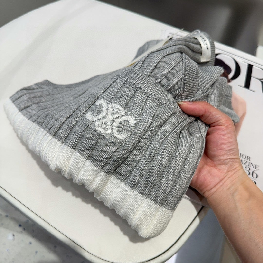 STRIPED TANK TOP 625958 IN GRAY AND WHITE COTTON RIBBED