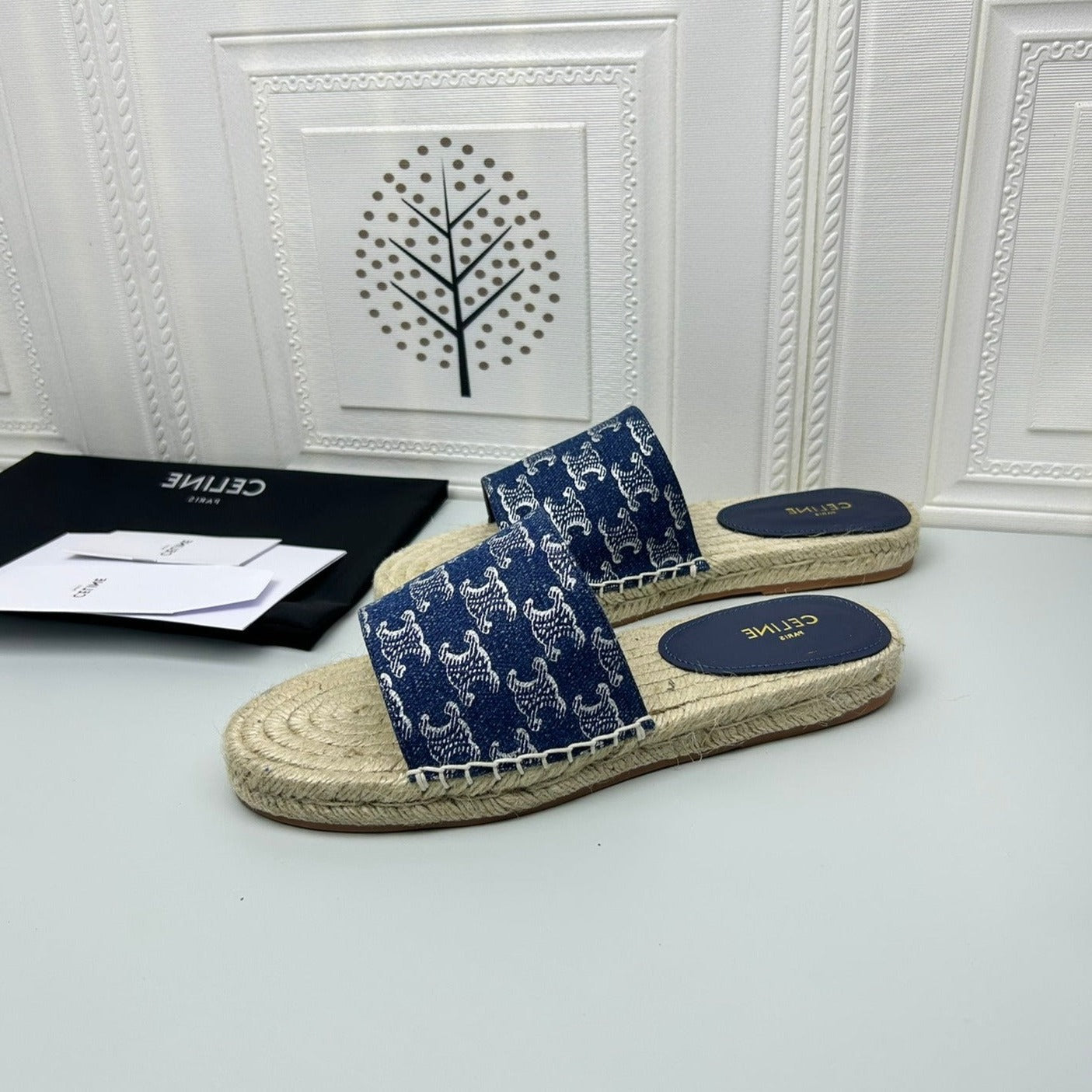 NEW FLAT FISHERMAN SLIPPERS NAVY BLUE COTTON CANVAS