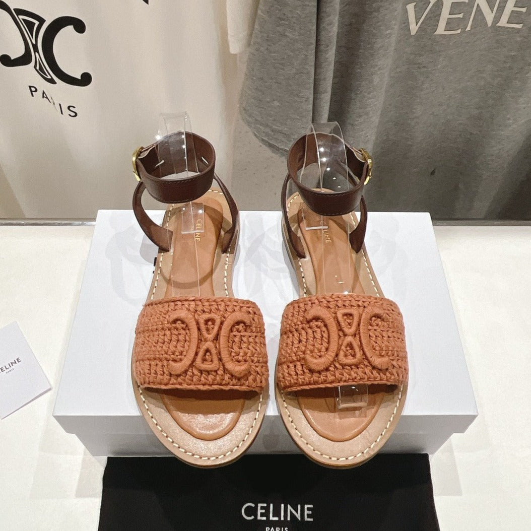 LYMPIA SANDAL IN TRIOMPHE MACCRAMÉ COTTON & CALFSKIN BROWN/DARK BROWN