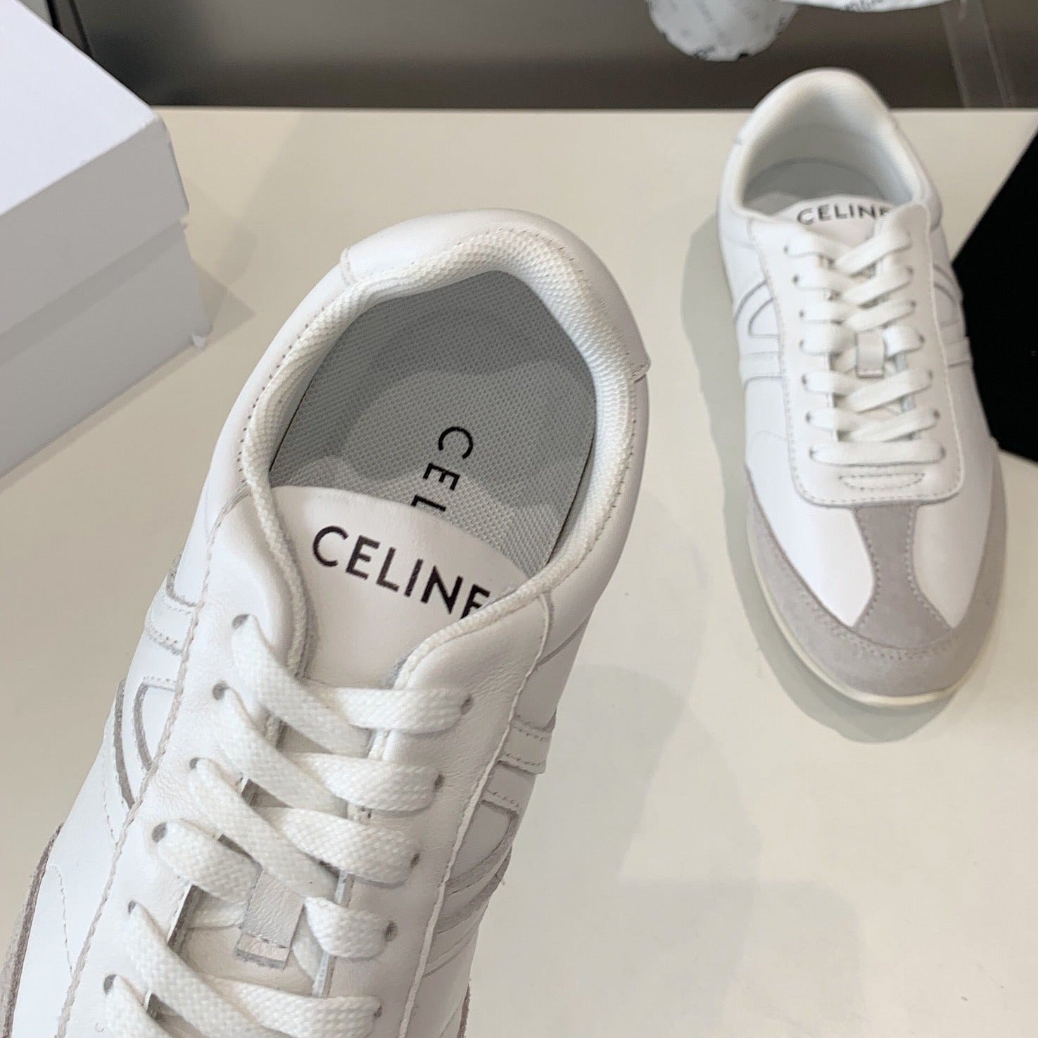 JOGGER LOW LACE-UP SNEAKER IN CALFSKIN & SUEDE CALFSKIN OPTIC WHITE/GREY