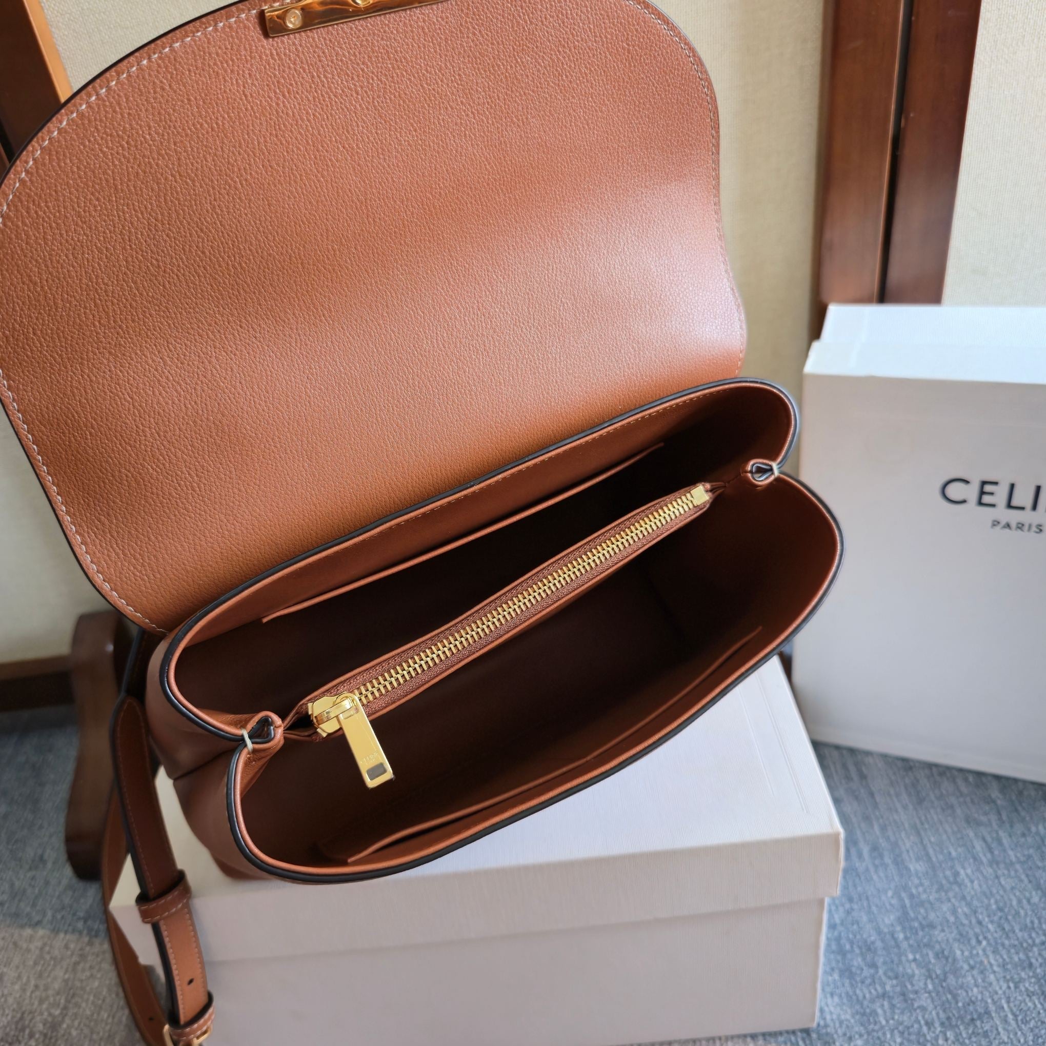 CELINE 25S MEDIUM NINO BAG 25MM IN TAN BROWN CALFSKIN GOLD HARDWARE