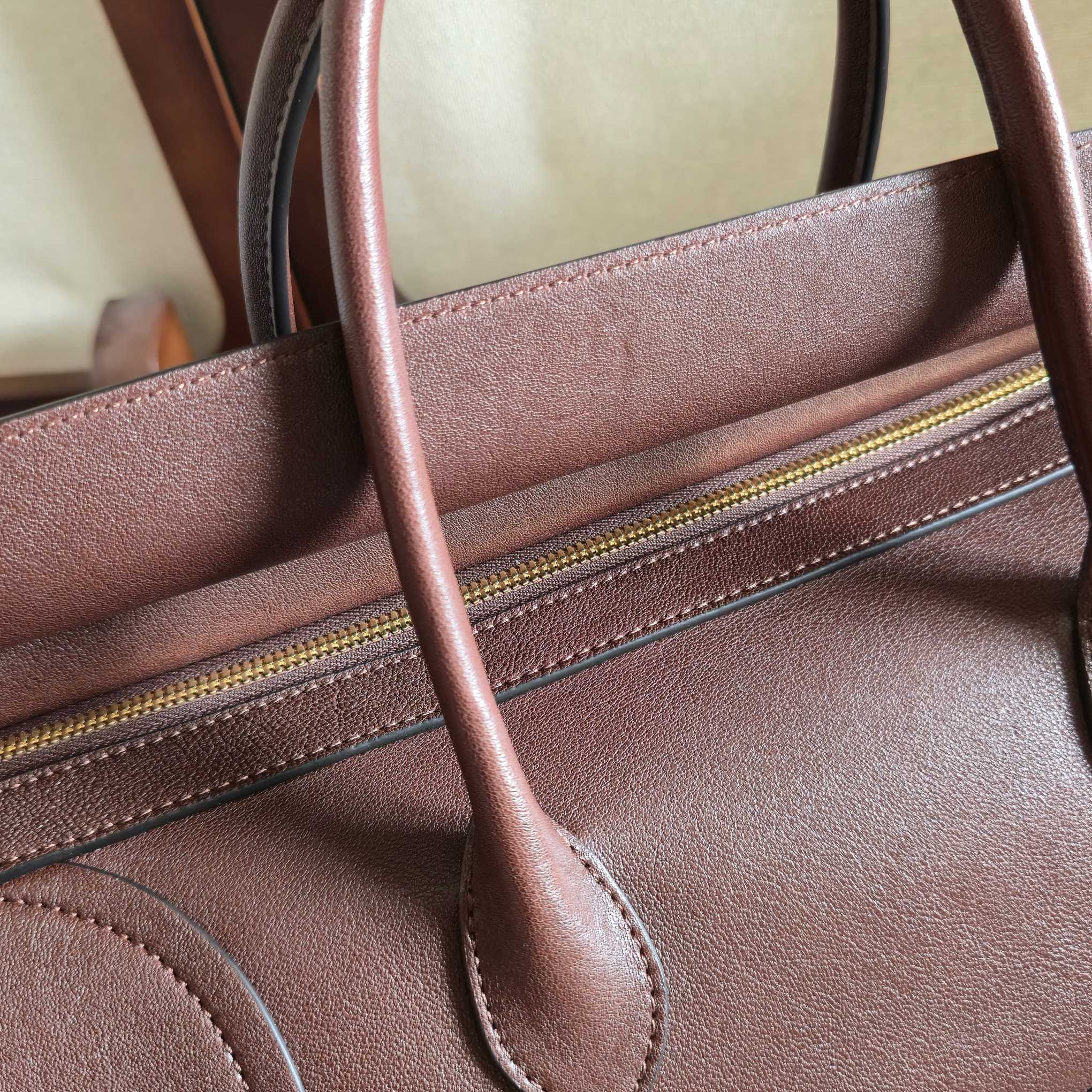 CELINE 25S MEDIUM SMILING NEW LUGGAGE 36MM IN SYRAH RED SUPPLE SHINY LAMBSKIN