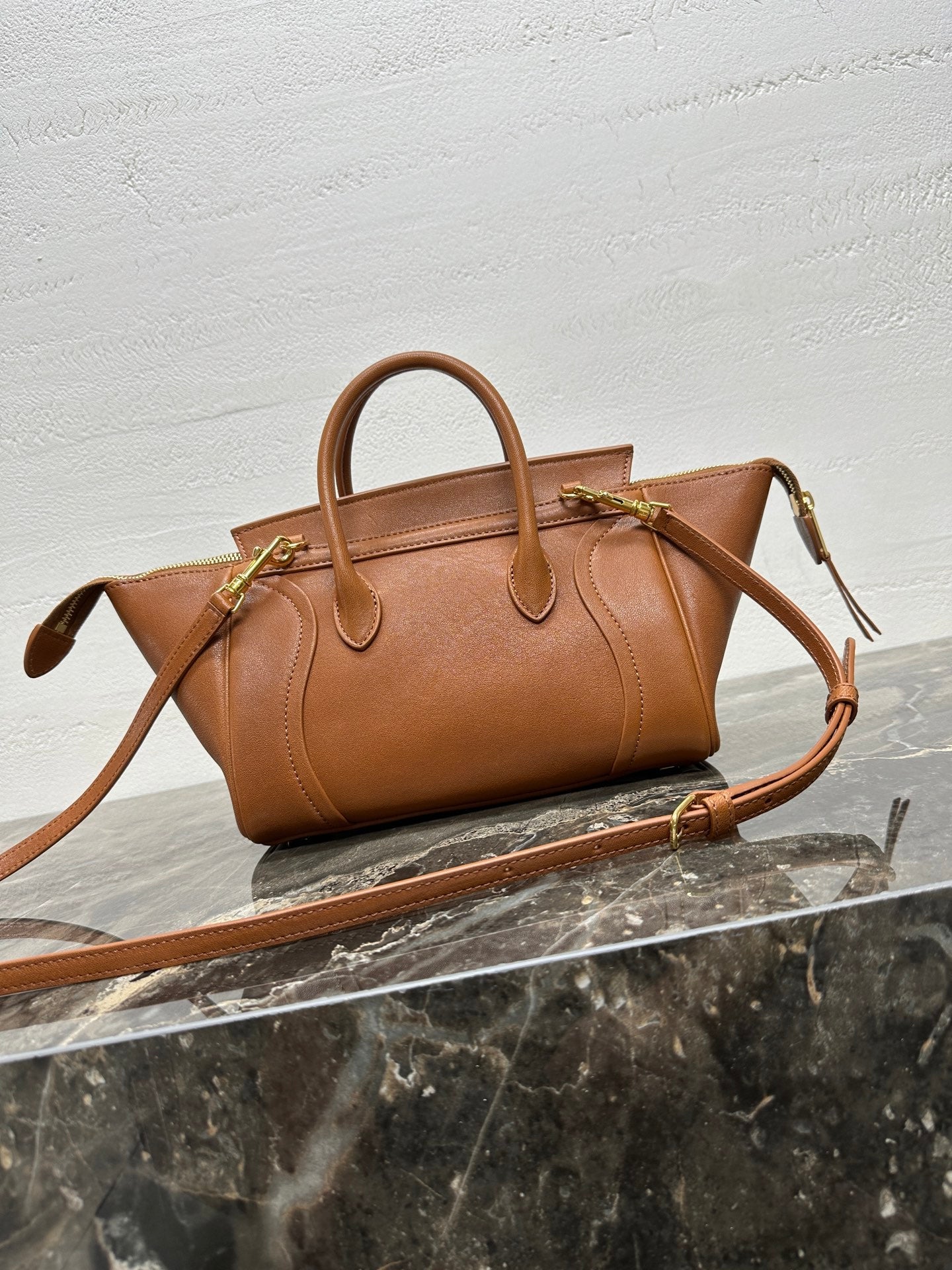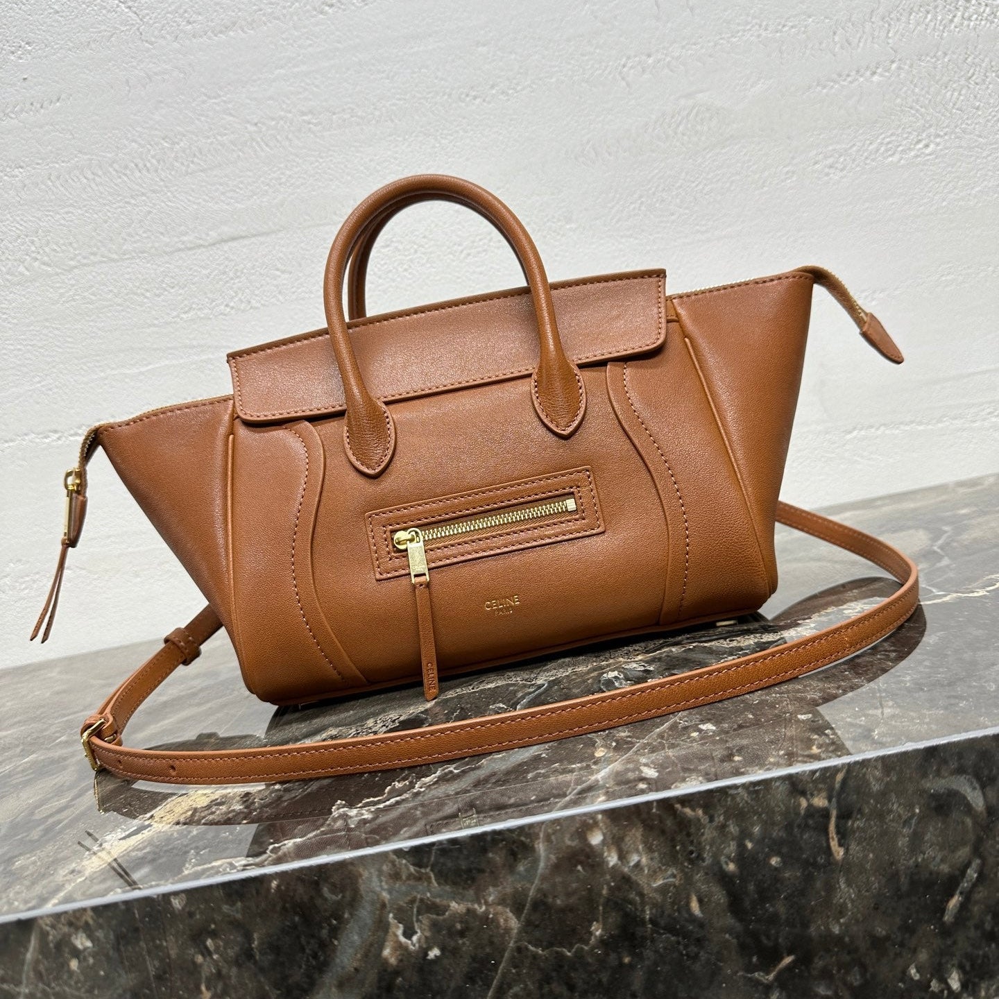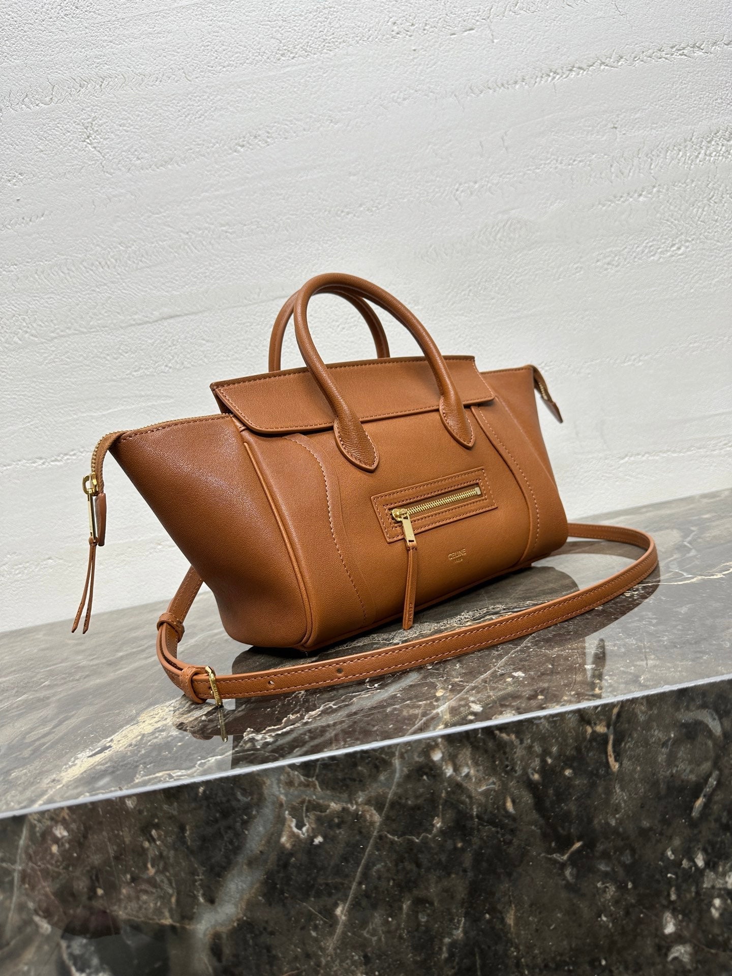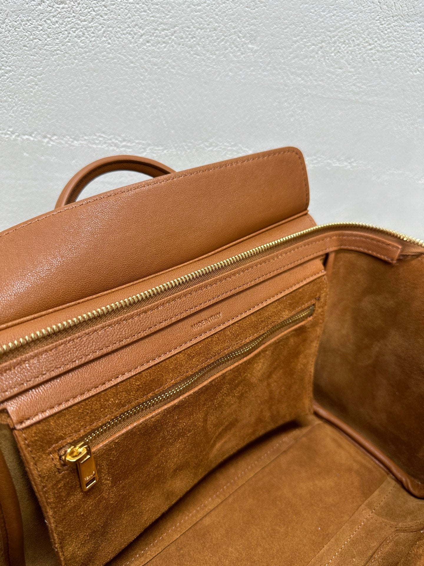 CELINE 25S NEW LUGGAGE 38MM IN TAN BROWN LAMBSKIN GOLD HARDWARE