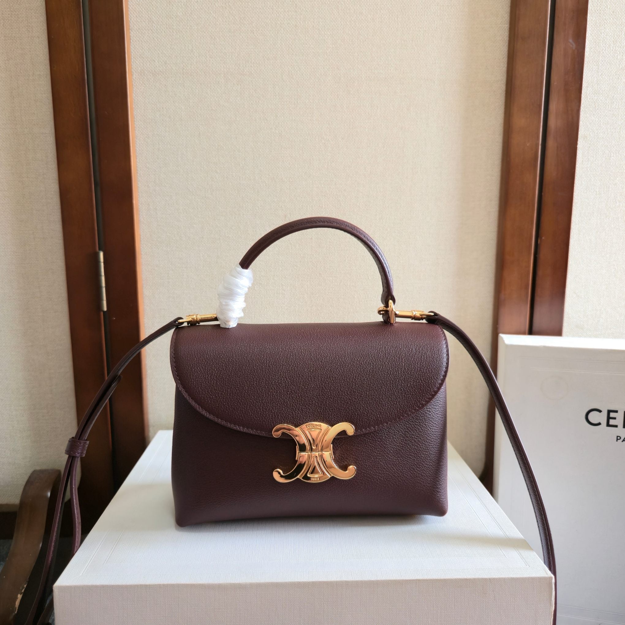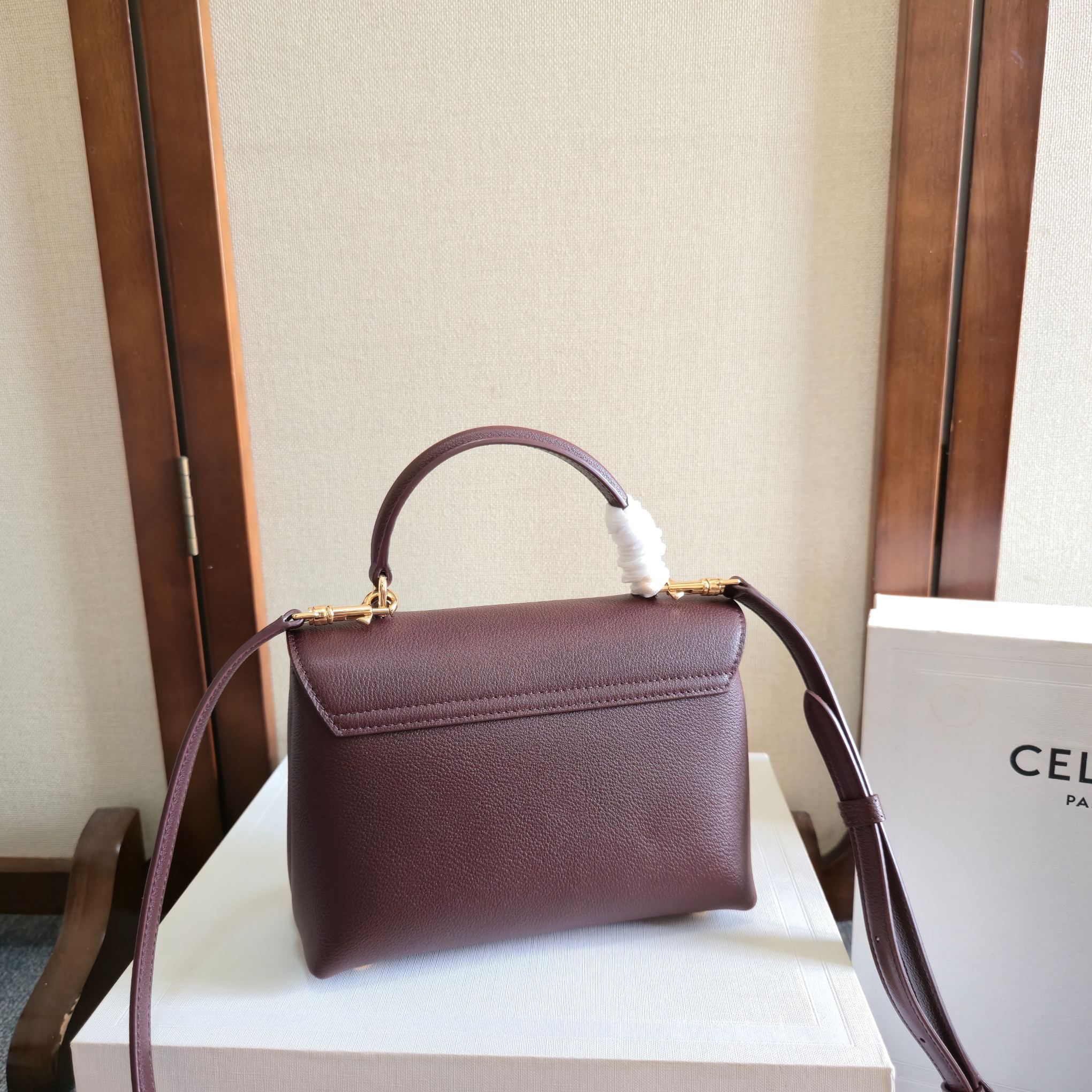 CELINE 25S NINO BAG 20MM IN SYRAH RED GRAINED CALFSKIN GOLD HARDWARE