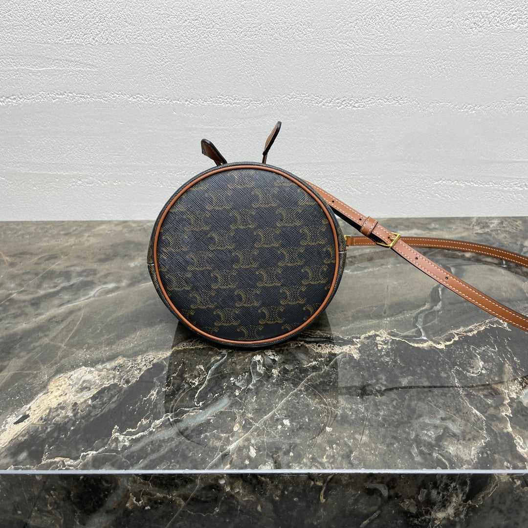 CLARA BAG 19 IN BLACK TRIOMPHE CANVAS AND BROWN CALFSKIN TRIM