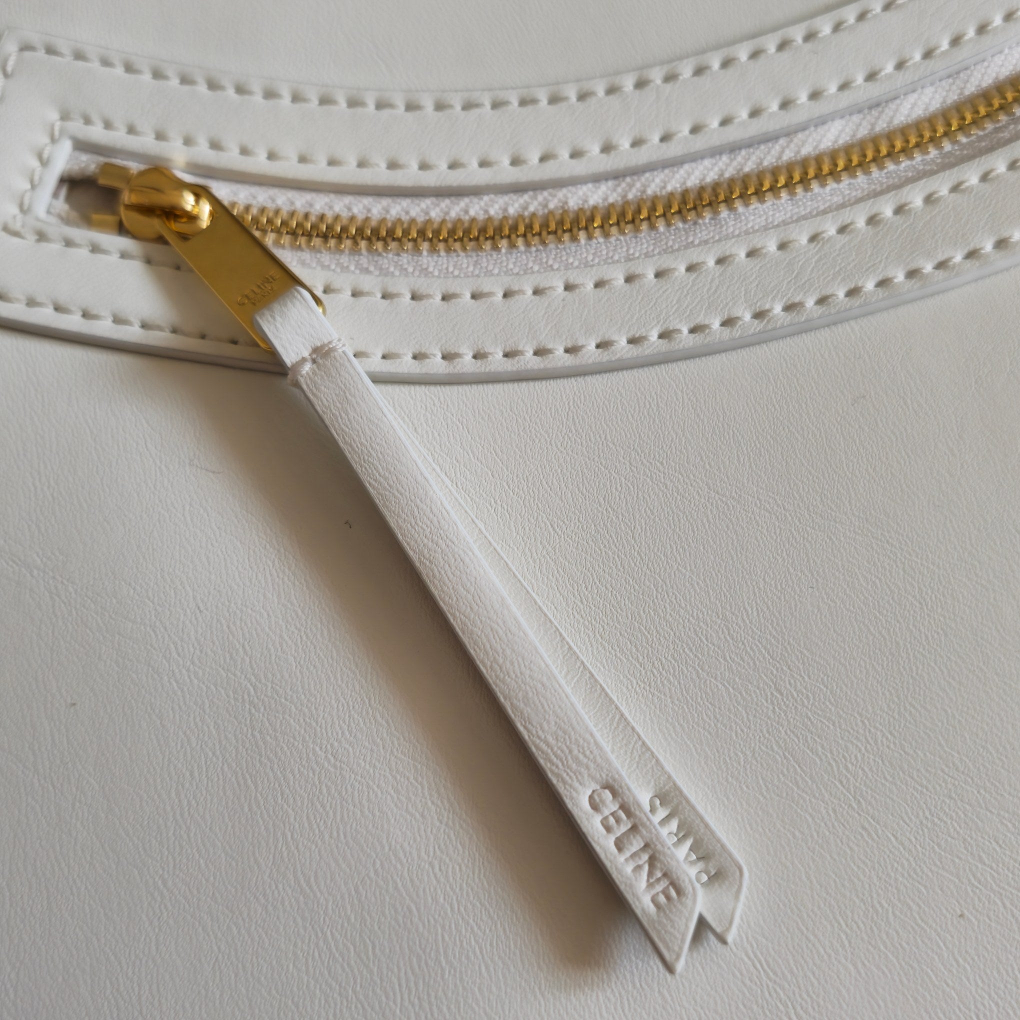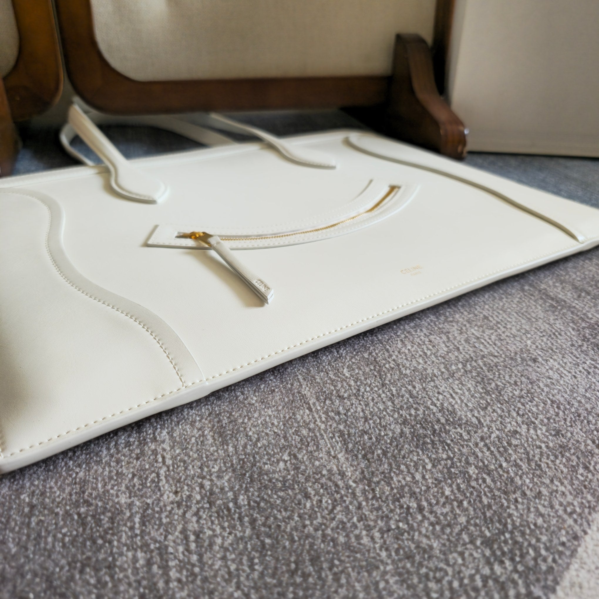 CELINE 25S FLAT CABAS NEW LUGGAGE 44MM IN WHITE GLOSSY CALFSKIN