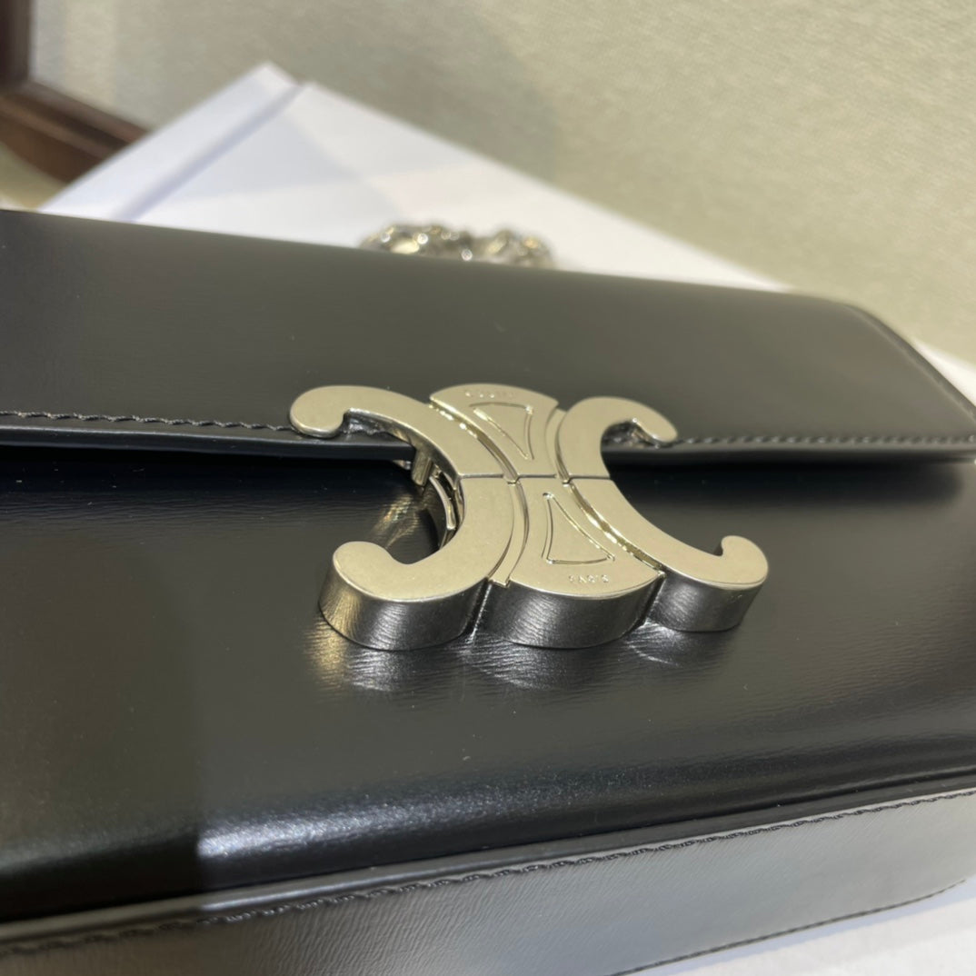 CHAIN EMBOSSED ARMPIT BAG 20 IN BLACK CALFSKIN SILVER HARDWARE
